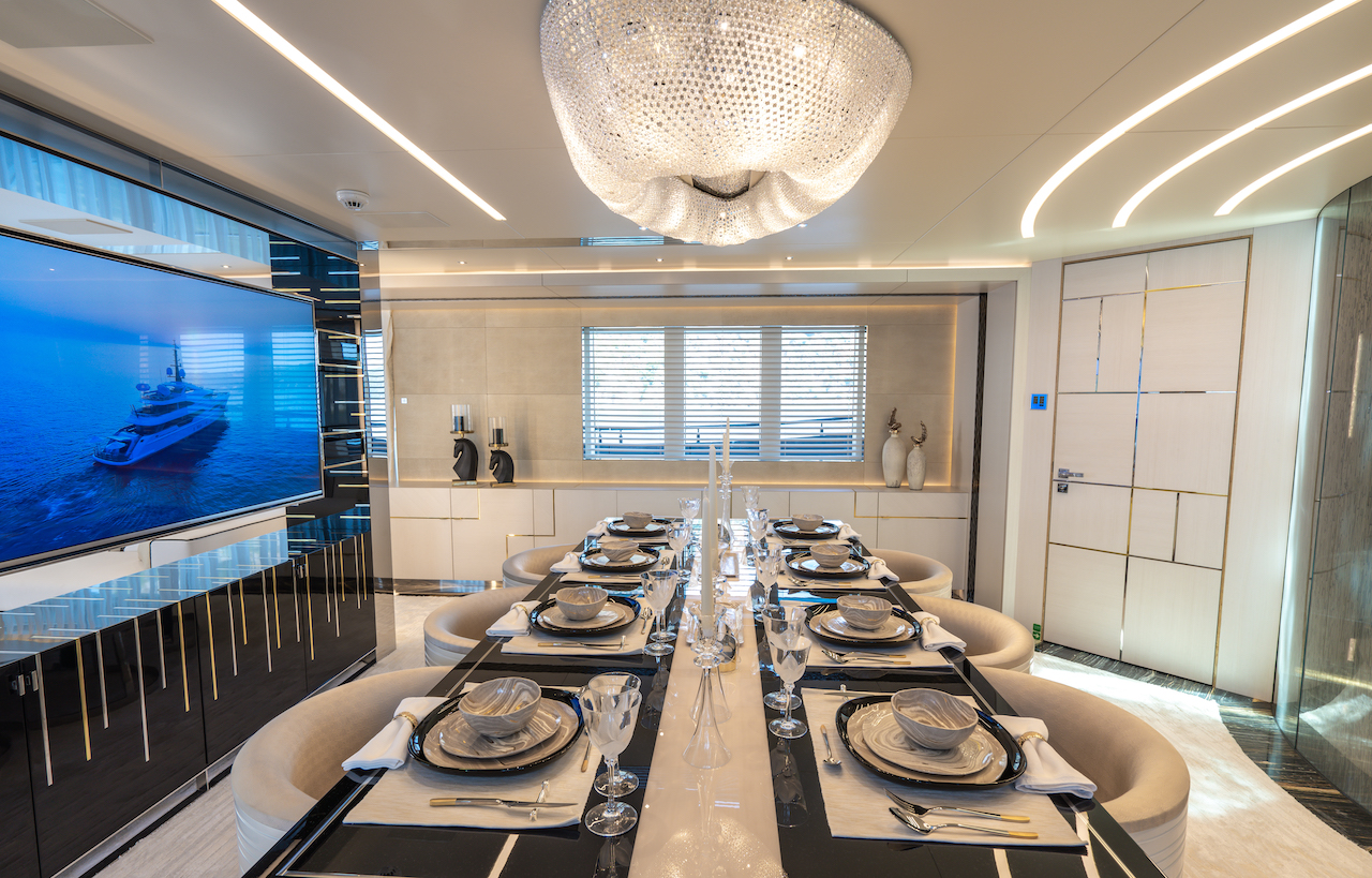 Spanning four decks, her amenities include two Jacuzzis and a wet bar as well as numerous alfresco dining and lounging areas. The accommodation sleeps a maximum of 10 guests over five en-suite cabins, with a crew of nine to ...