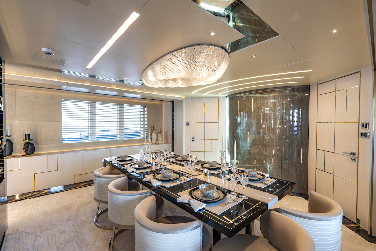 Spanning four decks, her amenities include two Jacuzzis and a wet bar as well as numerous alfresco dining and lounging areas. The accommodation sleeps a maximum of 10 guests over five en-suite cabins, with a crew of nine to ...