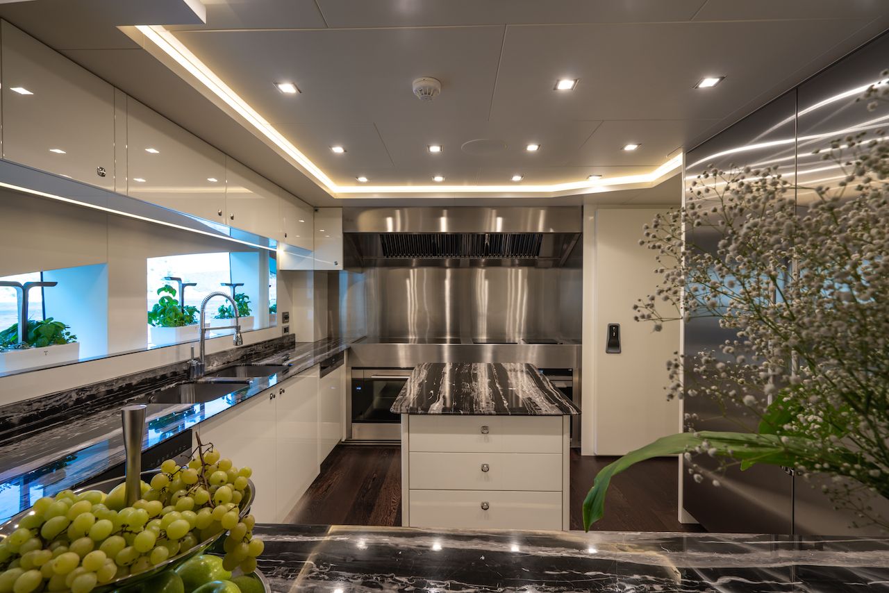 The accommodation sleeps a maximum of 10 guests over five en-suite cabins, with a crew of nine to ensure that all guests have a stellar cruising experience.