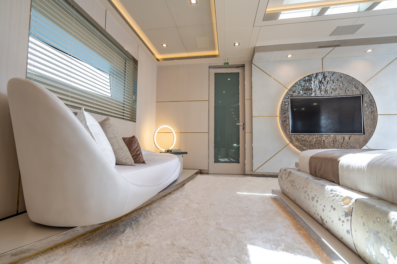 The accommodation sleeps a maximum of 10 guests over five en-suite cabins, with a crew of nine to ensure that all guests have a stellar cruising experience.