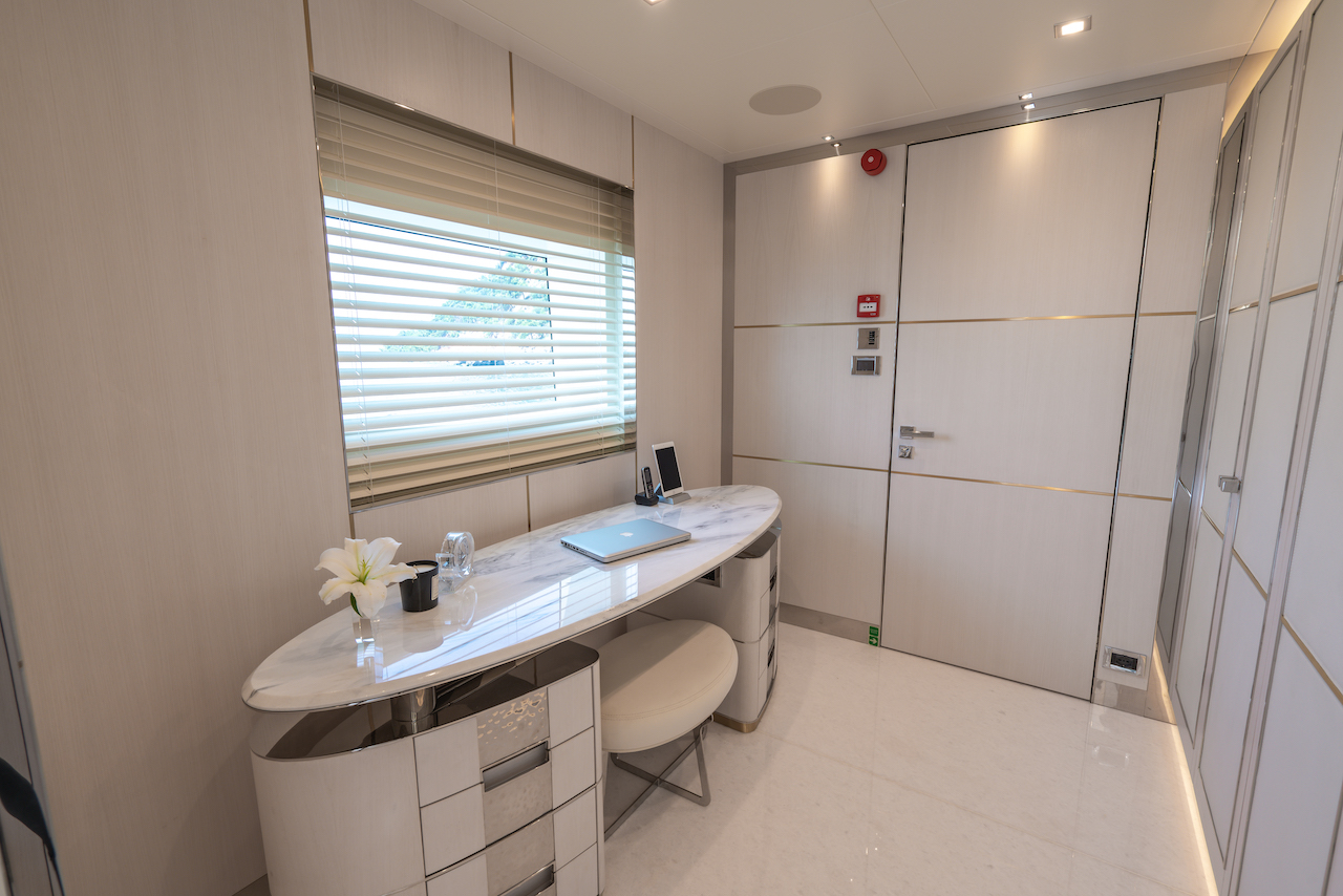 The accommodation sleeps a maximum of 10 guests over five en-suite cabins, with a crew of nine to ensure that all guests have a stellar cruising experience.