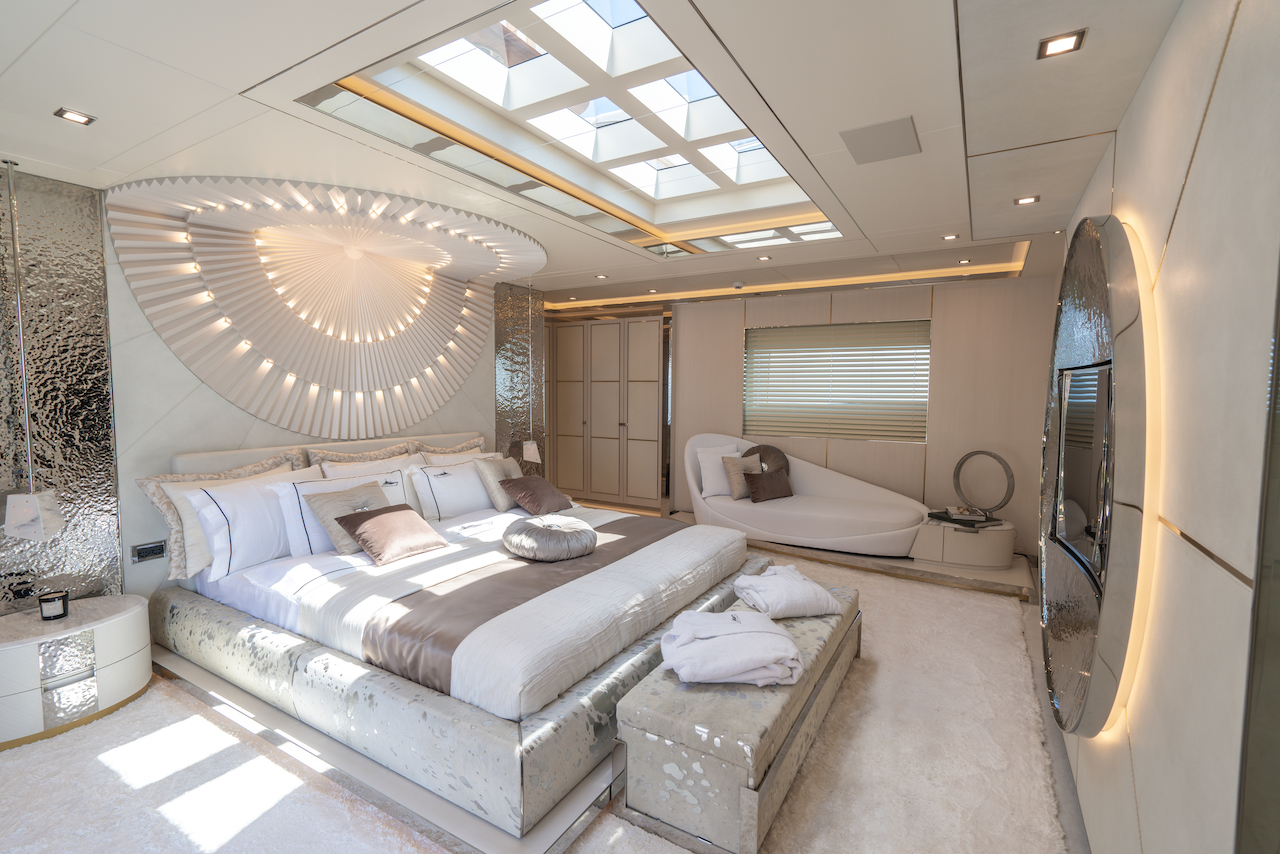 The accommodation sleeps a maximum of 10 guests over five en-suite cabins, with a crew of nine to ensure that all guests have a stellar cruising experience.