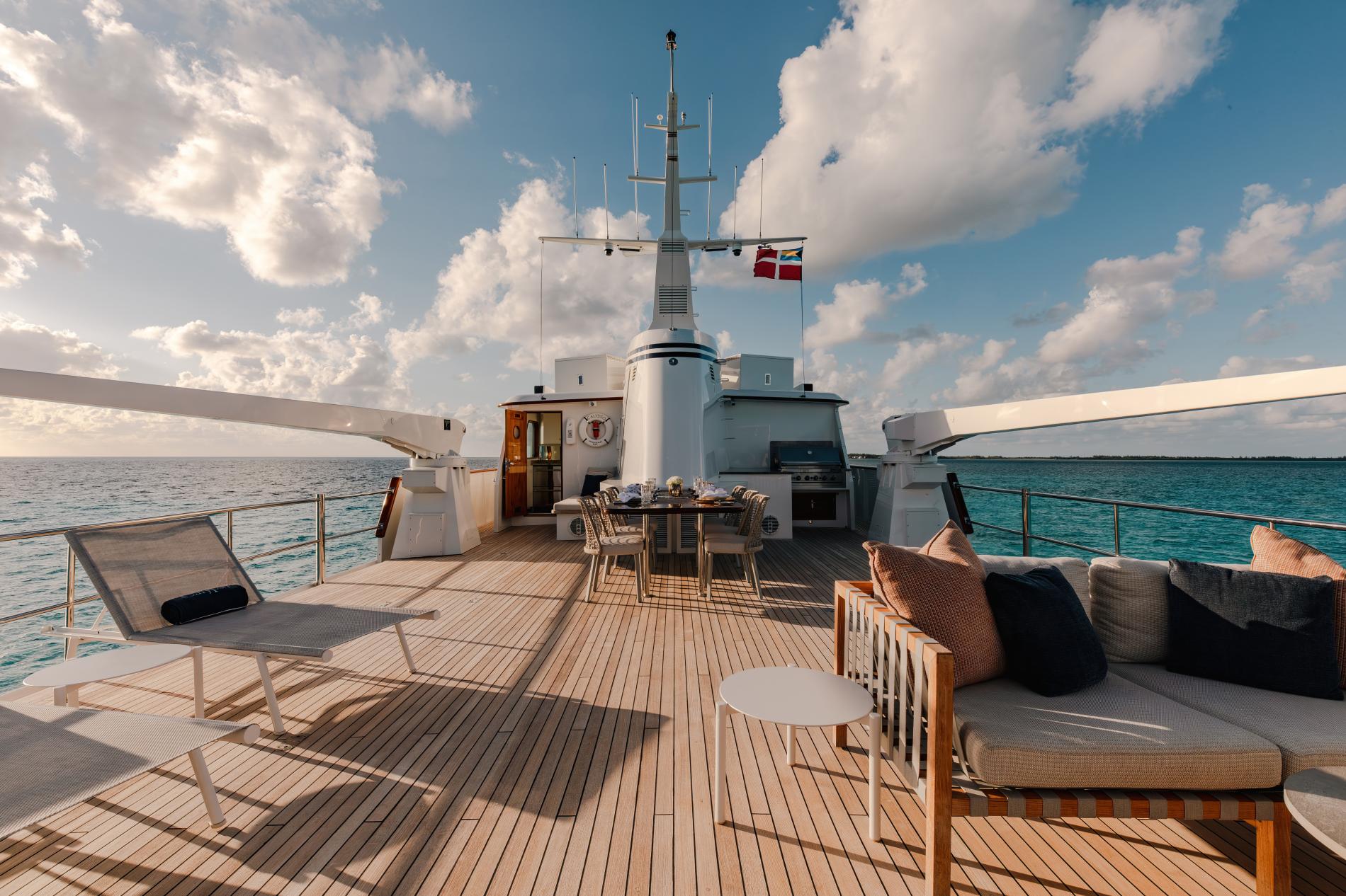 The main deck aft has enclosed alfresco dining, allowing the fresh air to enter whilst preventing any gusts or passing rain clouds to spoil the dining experience.