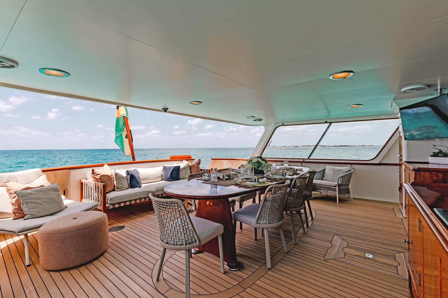 The main deck aft has enclosed alfresco dining, allowing the fresh air to enter whilst preventing any gusts or passing rain clouds to spoil the dining experience.
