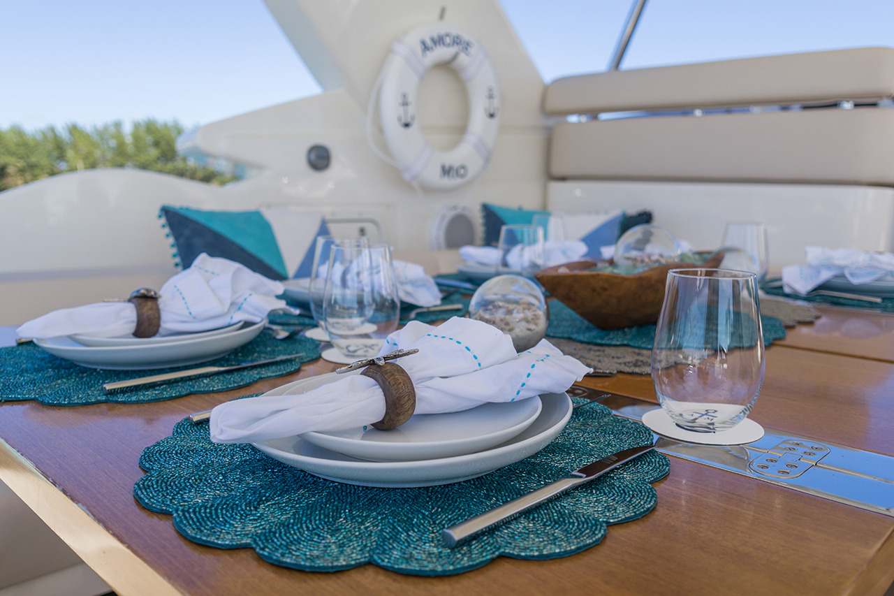 NOTABLE FEATURES: ~ Alfresco dining table ~ swim platform ~ Raised sun pads ~ Jacuzzi tub ~ Selection of water toys