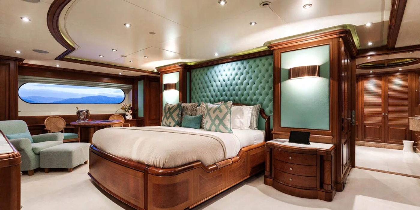 Luxury motor yacht JO can accommodate 10 to 12 guests in 5-6 cabins. The yachts master cabin is full width of the beam and is located on her main deck. There are also two double cabins and two twin cabins (with additional Pullman bunk beds) on her lower deck.