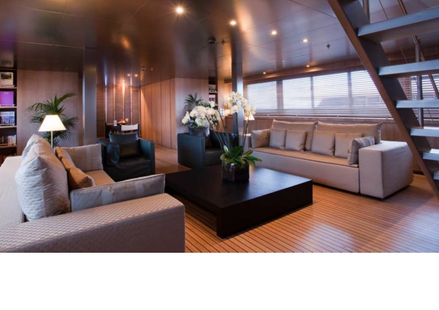 The main deck offers a comfortable salon and optional dining area, with a generous lounge, plush seating and coffee table.