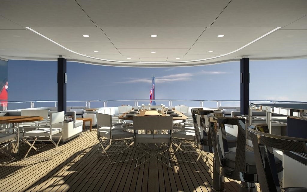 Forward to the salon is the formal dining table seating guests in elegance. A foyer to starboard leads to the full beam master stateroom, furnished with a king size bed. The main deck boasts panoramic windows throughout ensuring optimum natural light.