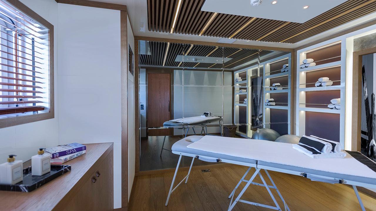Her naval architecture is by CMB Yachts, while her interiors are the work of Arte-Bel Design Studio. She offers accommodation in 5 cabins, for up to 12 people. She was refitted in 2023/2024.