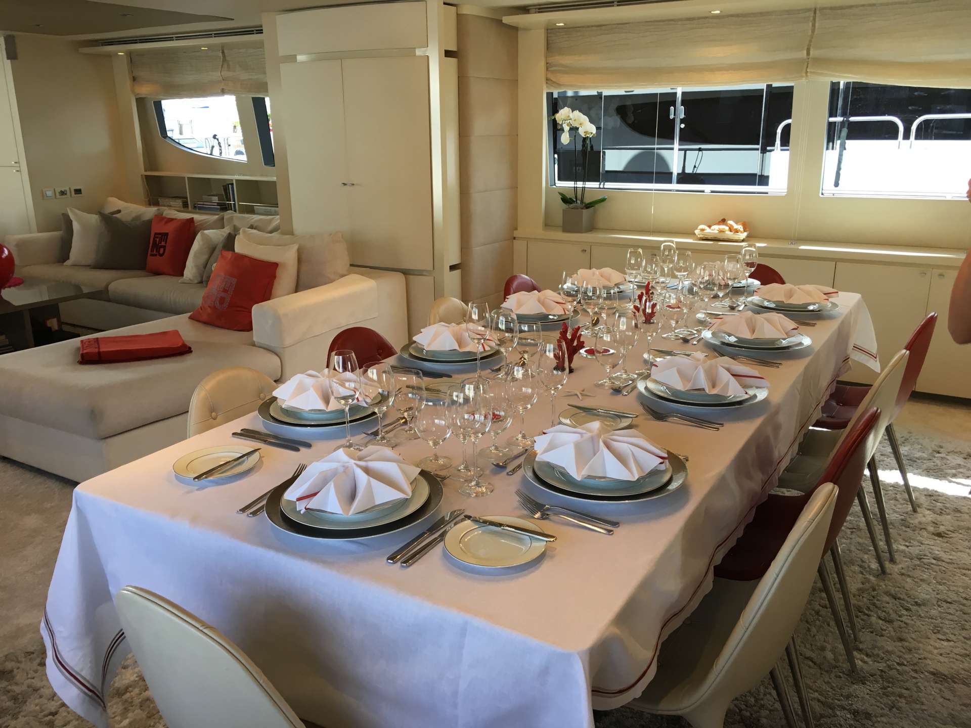 The accommodation sleeps a maximum of nine charter guests over four en-suite cabins, with a crew of five to offer stellar service throughout the cruise.