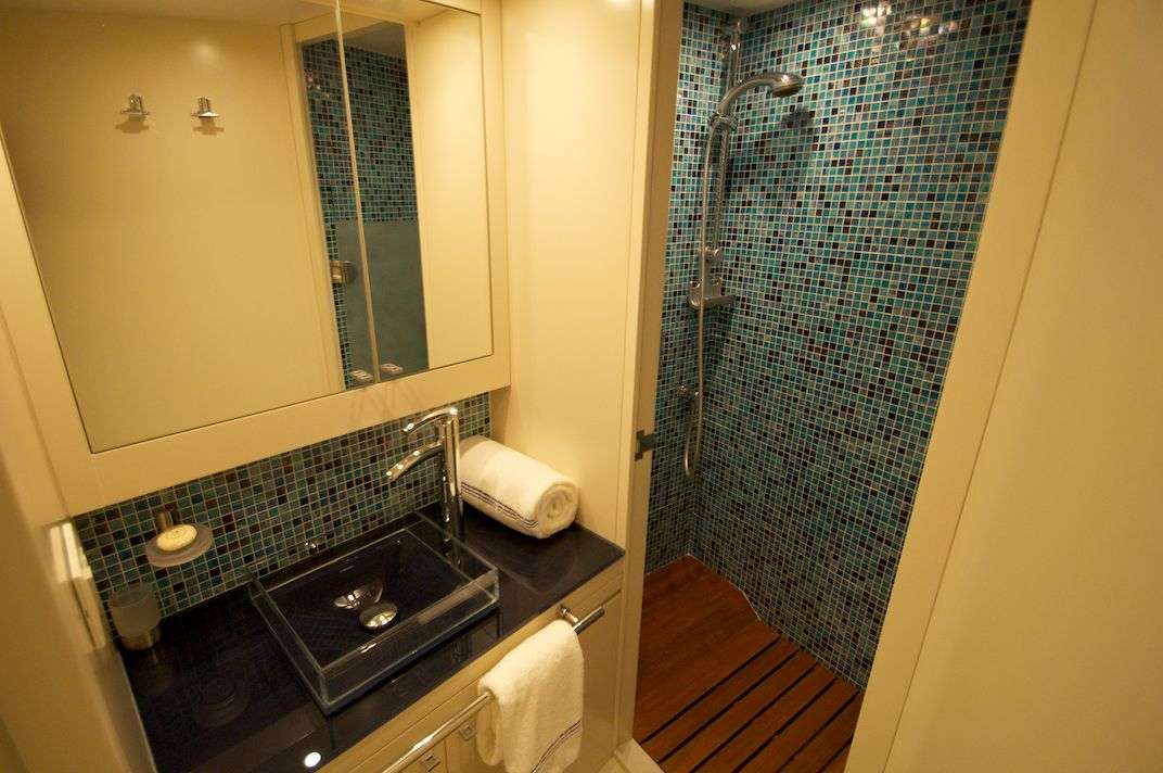~ The VIP stateroom on the lower deck has a queen-sized bed with a desk, sofa, plenty of storage, TV entertainment and an en-suite ...