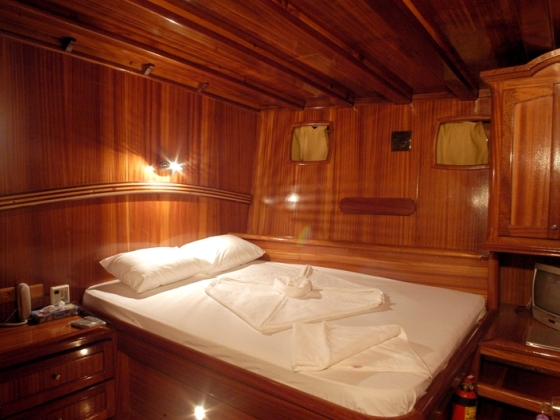 Sailing Ketch CELIK DE S offers accommodation for up to 14-16 guests in seven cabins consisting of 5 doubles and 2 twins. All of the cabins have private en-suite bathrooms, Air conditioning, hot water, TV, VCD player, music system and inbound telephone systems. The crew of 4 have separate crew cabins.