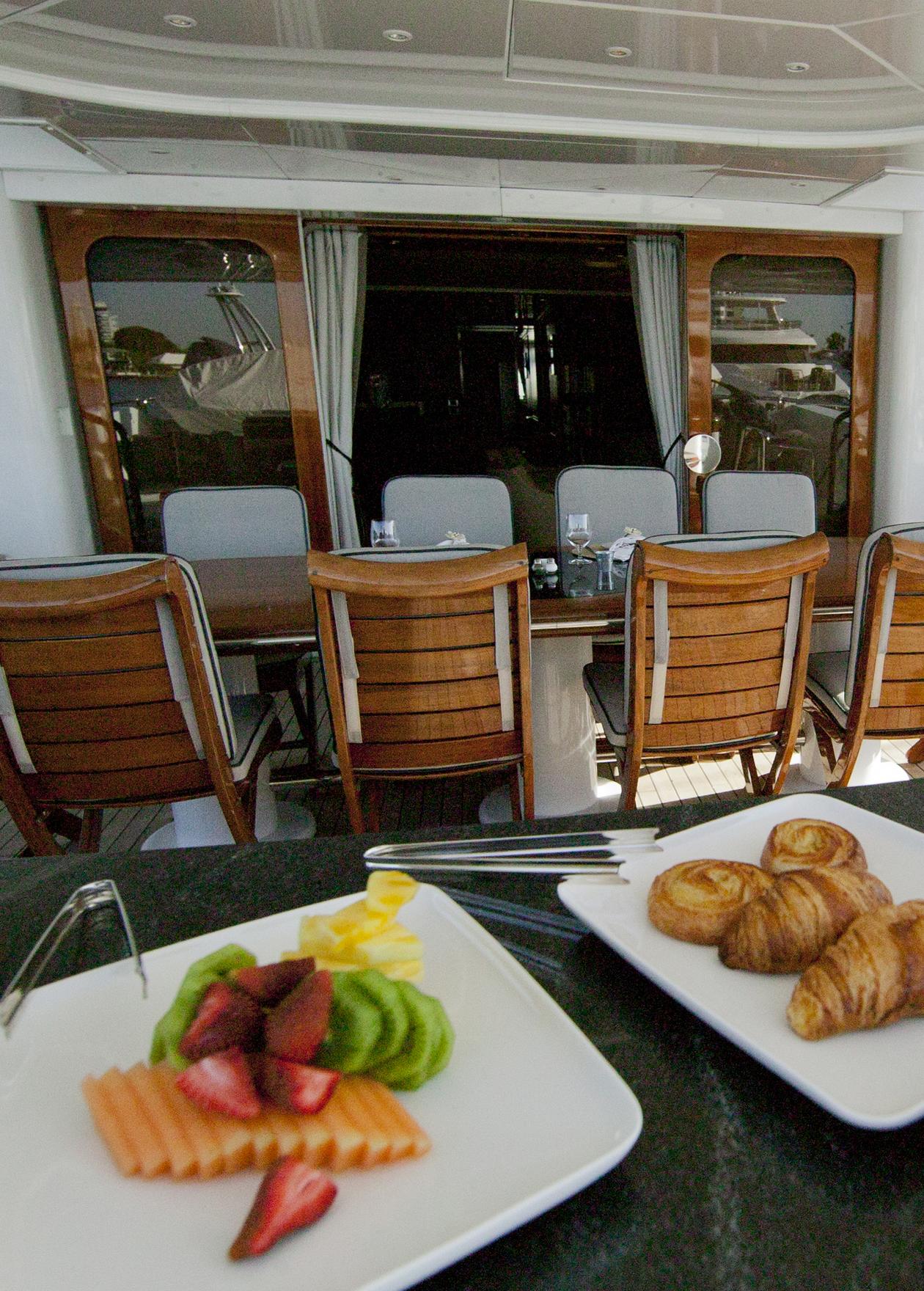 For a more relaxed atmosphere, there is always the option of alfresco dining on IL SOLE's beautiful aft deck able to seat up to 12 ...