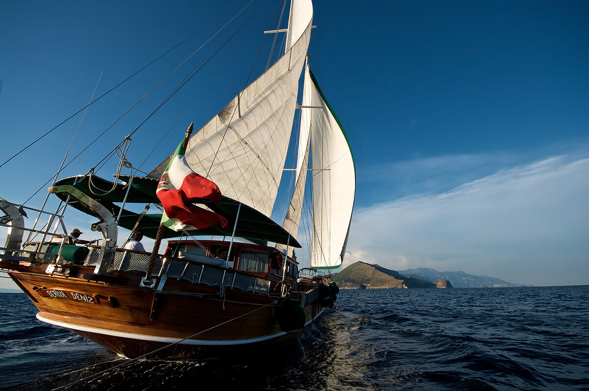 Motor Sailor Deriya Deniz provides yacht charters in The Mediterranean, Directory, Procida, Naples & Capri, Italy, Elba, and Amalfi Coast.