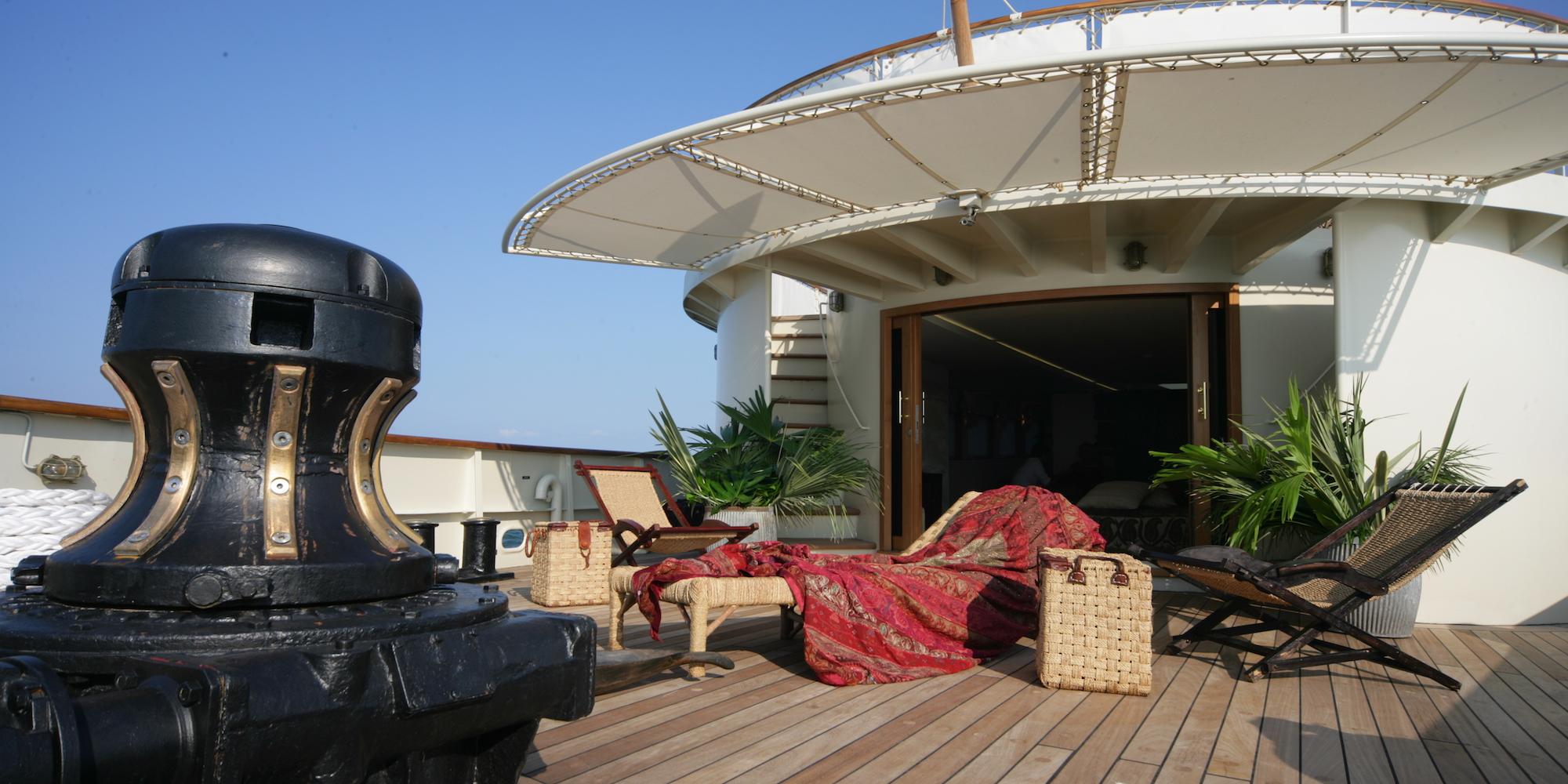 You and your guests will feel instantly at home with the elegant soft furnishings of the dining areas in the saloon and on the main deck. Informal and homely, these were chosen over traditional sofas to evoke a greater sense of freedom.