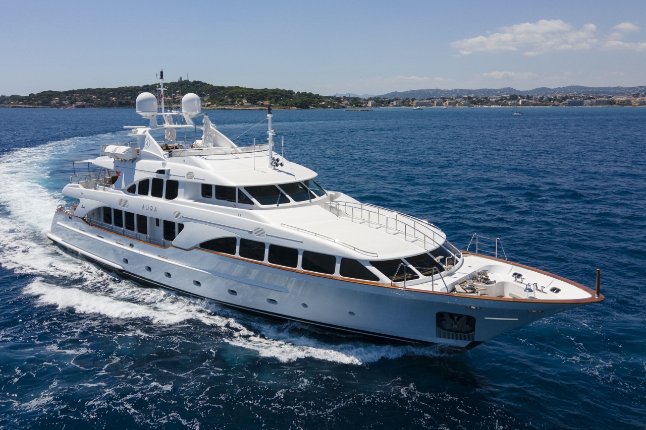 Luxury Mediterranean charter yacht AURA is a modern Benetti 36 meter motor yacht with an interior designed by Lynn A. Cullen. M/Y AURA is equipped with an ultra-modern stabilization system which operates even while at anchor.