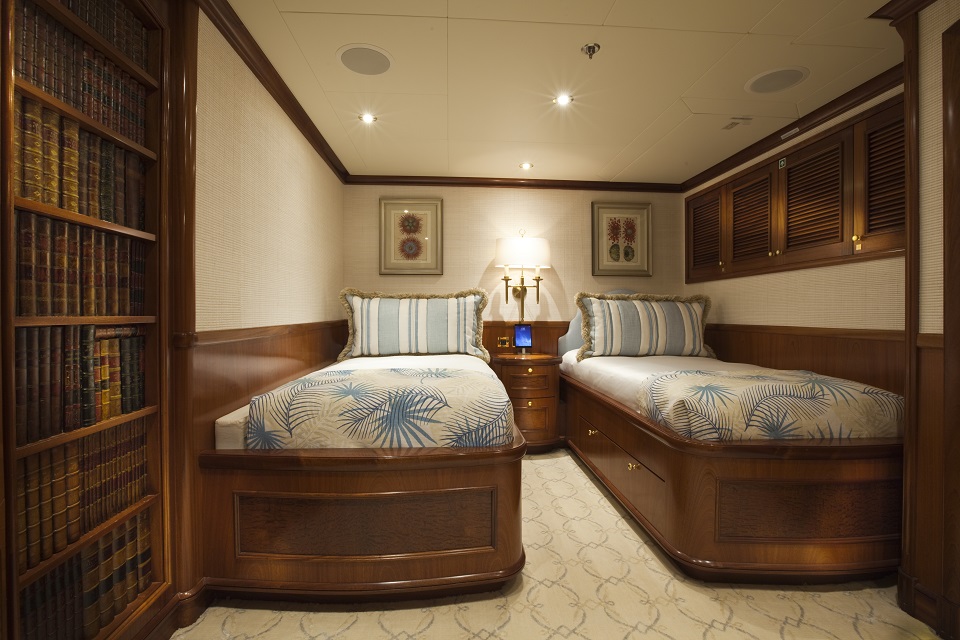 Below decks are the 2 Queen Guest staterooms and 2 Twin guest staterooms all with ensuite heads and showers. The VIP is situated privately on the sky lounge deck. All staterooms are equipped with CD/DVD and satellite entertainment systems.