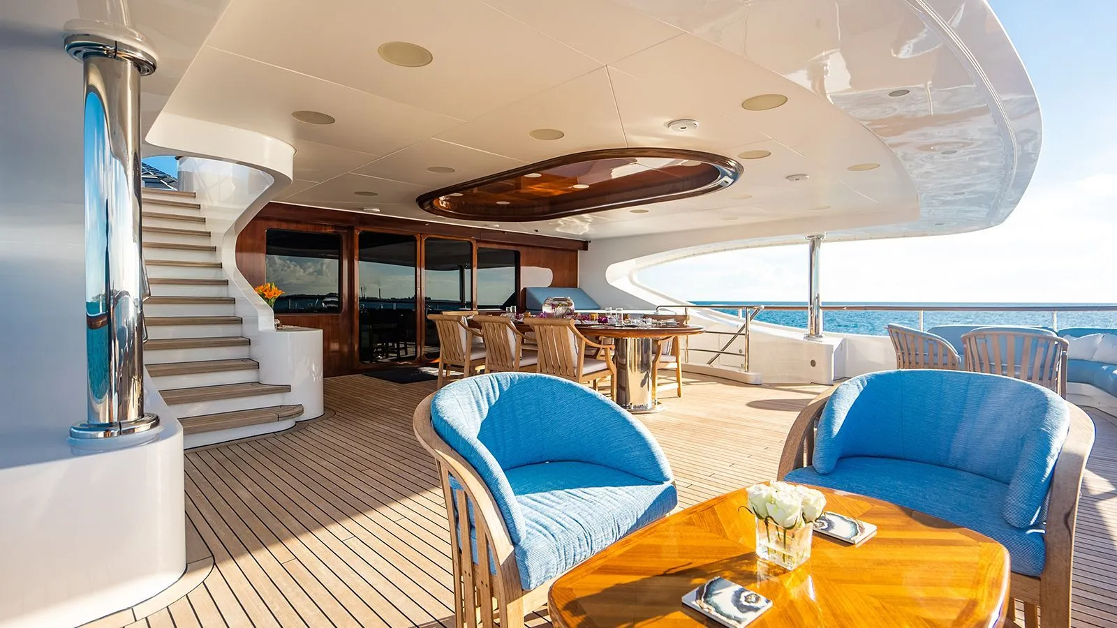 On the main deck, the principal superb entertaining areas include the main saloon, the dining saloon which seats 12 and the bar area.