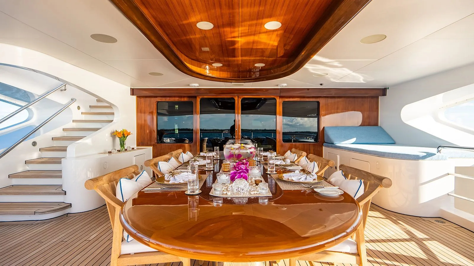On the main deck, the principal superb entertaining areas include the main saloon, the dining saloon which seats 12 and the bar area.