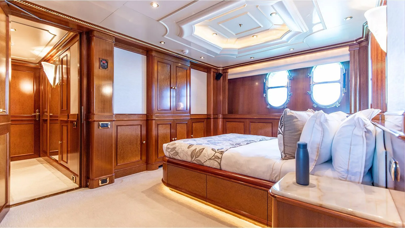 NEXT CHAPTER provides luxurious accommodation for up to 13 guests in 6 main cabins as follows: Her well-appointed, split-level Owner’s suite is complete with his and her bathrooms, an observation lounge and also a study.