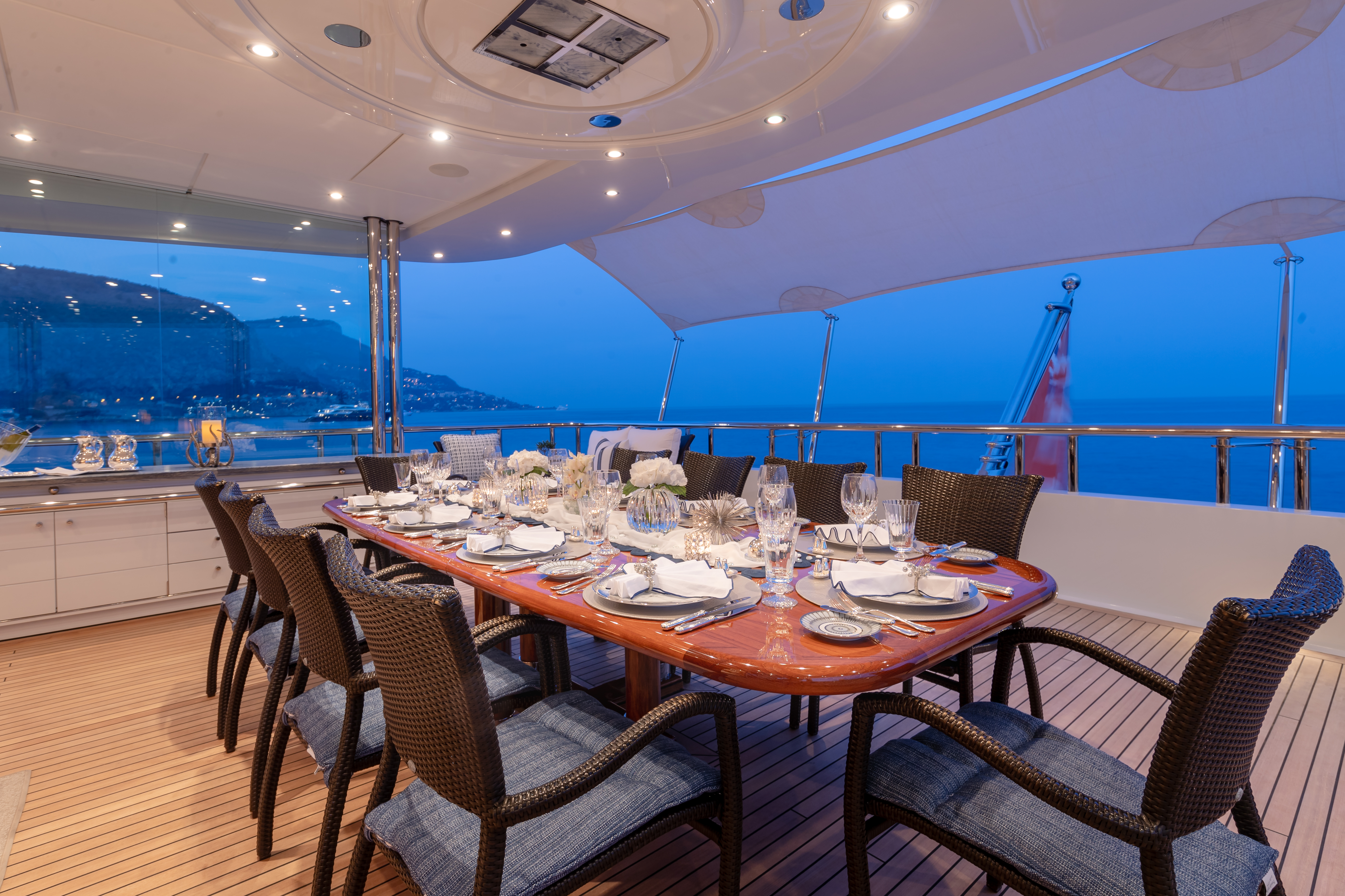 These include a large pool with an overflow system; a golf system; a strong structure allowing a touch and go area on the flybridge, while keeping large glass panels on the deck below; a large aft swimming platform combined with ...