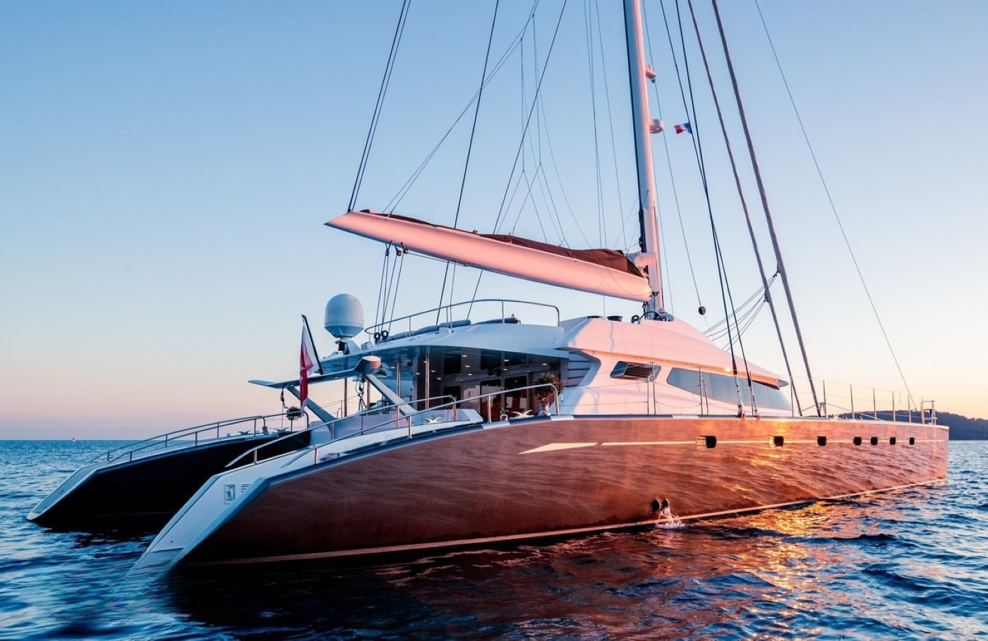 She can offer extended cruising at speeds over 20 knots with the maximum of security and with incredible comfort. Comparing to the standard monohull of her size, she set up new standards of sea capabilities.