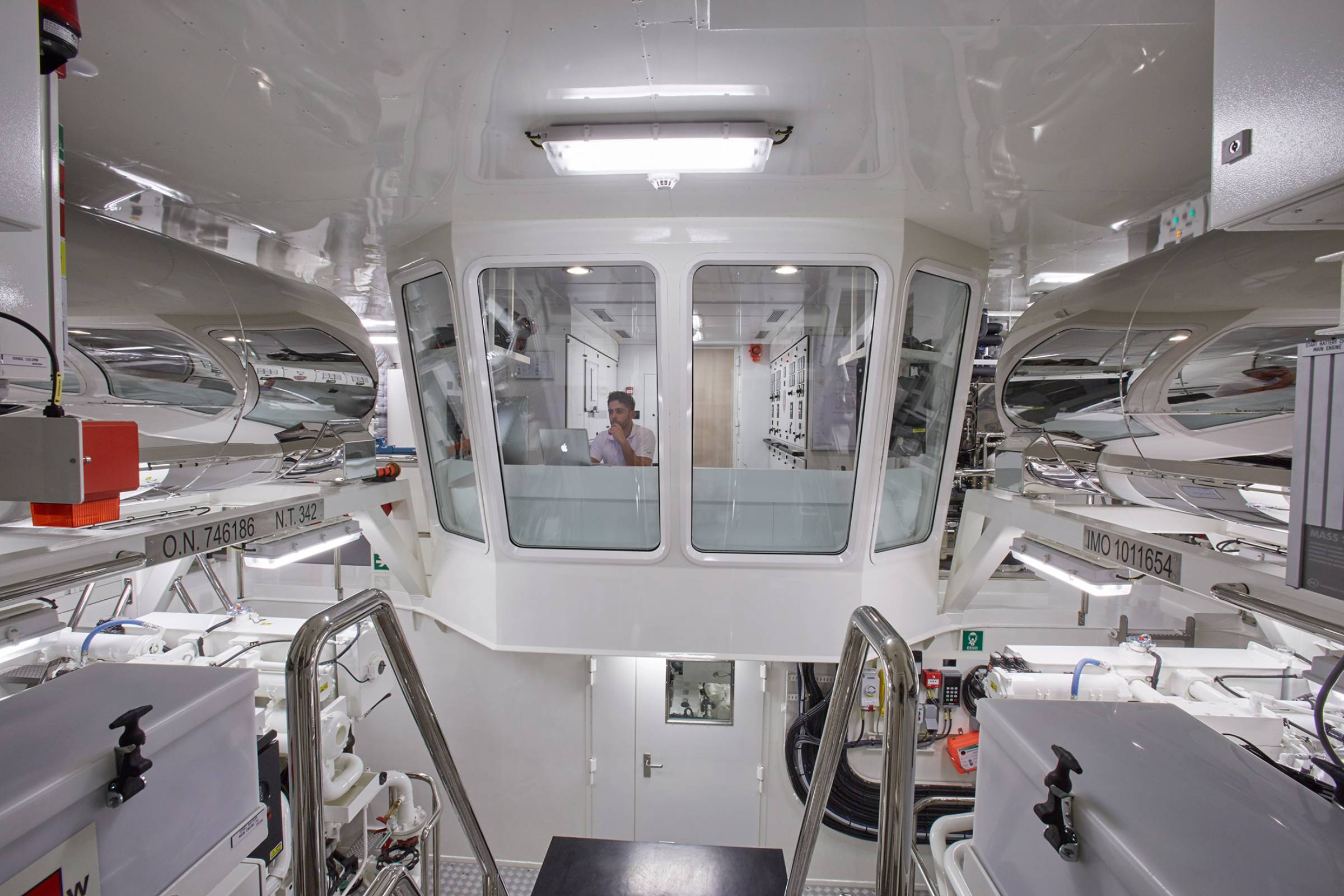 Tim Heywood’s avantgarde aesthetics house a beautiful and functional interior layout, where the engine room and all main systems are located centrally.