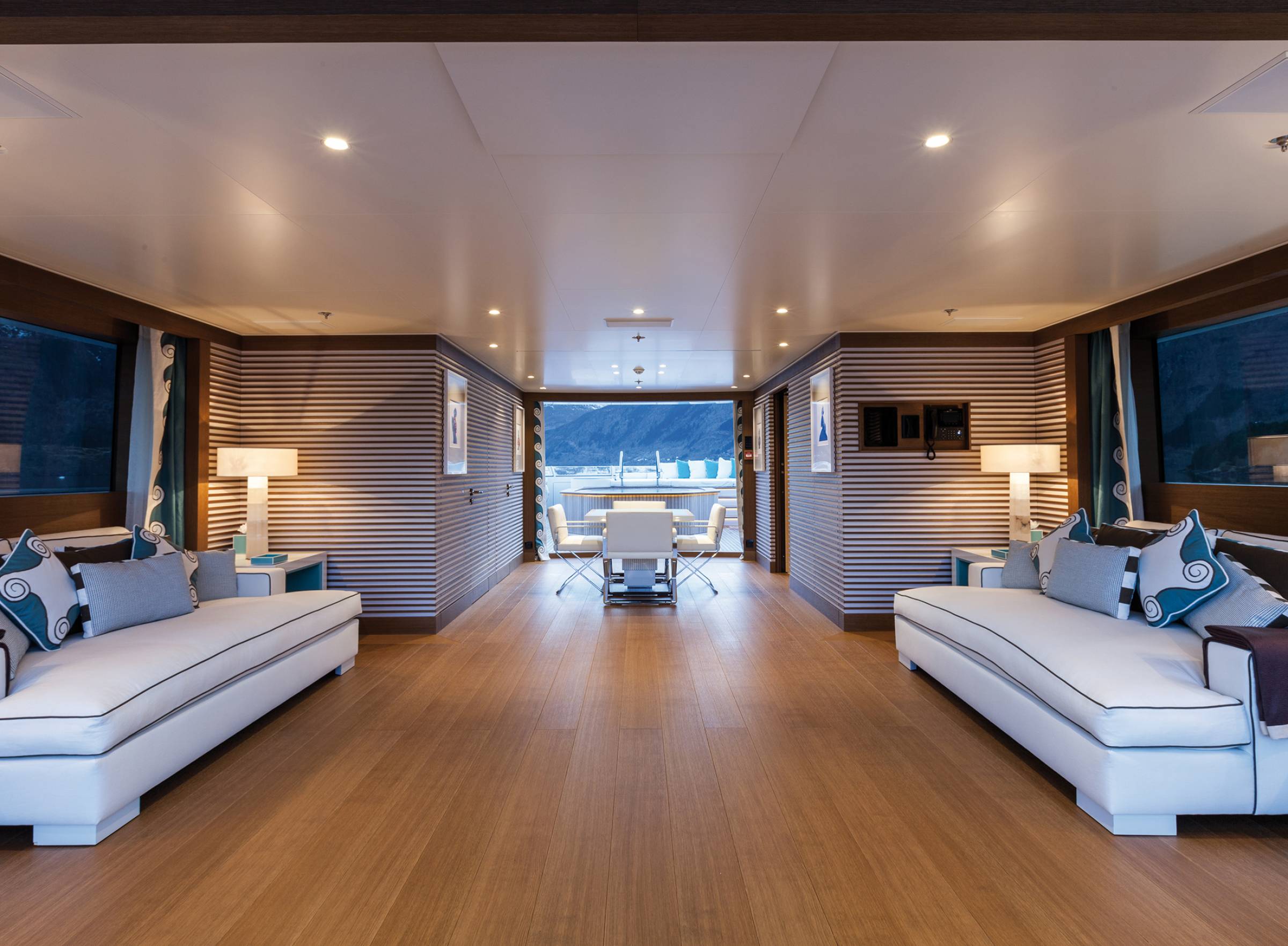 The owner will personalise the 60-metre yacht to his own tastes and purposes and can specify a Touch & Go helipad on the foredeck. The creation of a sun deck lounge, accessible from the central staircase.