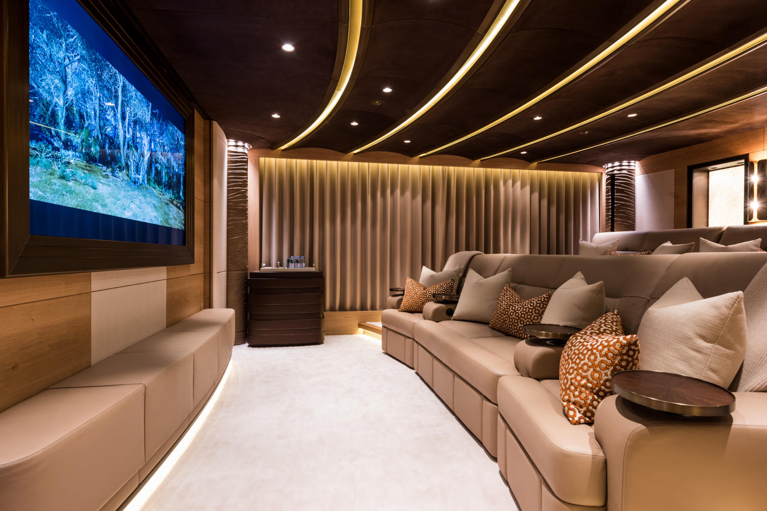 Among the other special features of this yachting jewel, is the beautiful accessibility, thanks to a central spiral stairway and round glass elevator that travels from the lower deck to sun deck. “It’s nice when your eye flows from stern to bow and back again,” Heywood says.