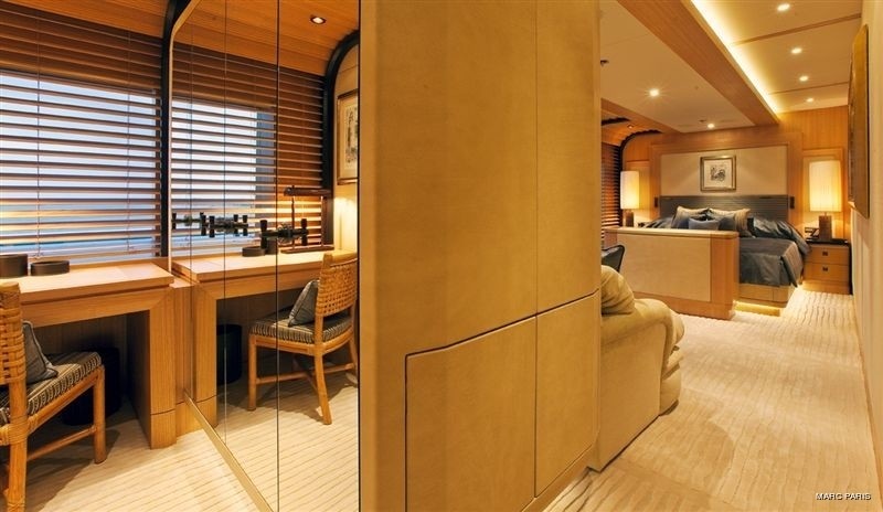 Forward on her Main Deck, the full-width master suite—with deluxe bath, dressing room and office. Among her most exceptional features are two elegant VIP suites set comfortably amidships on the Bridge Deck, each with a balcon parisien which opens the space to fresh sea air and vivid sea views.