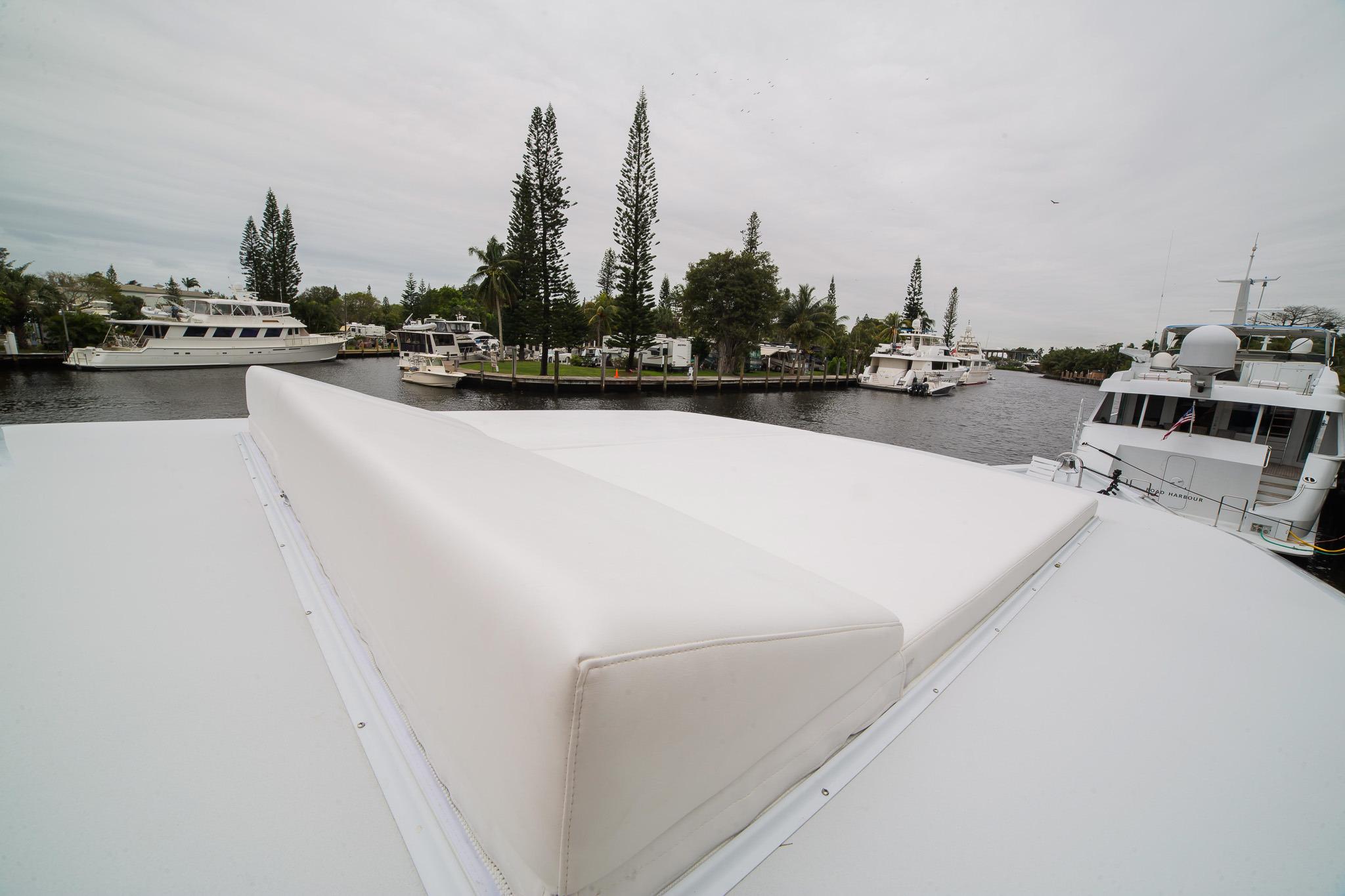 LADY LEX has plenty of exterior living areas to relax and enjoy, the aft deck is spacious and offers alfresco dining and wet bar, further aft the large swim platform makes water activities readily available.