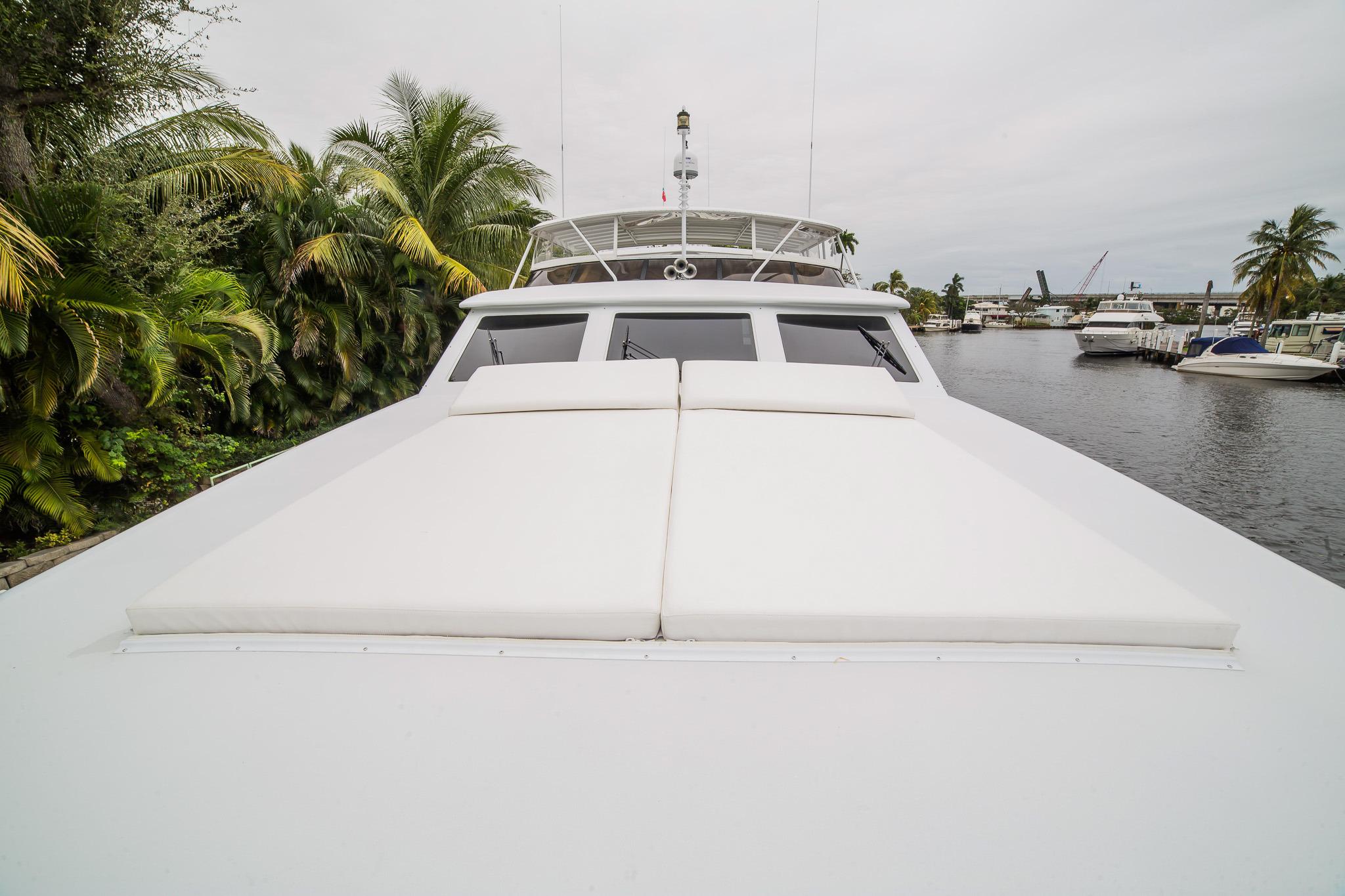 LADY LEX has plenty of exterior living areas to relax and enjoy, the aft deck is spacious and offers alfresco dining and wet bar, further aft the large swim platform makes water activities readily available.