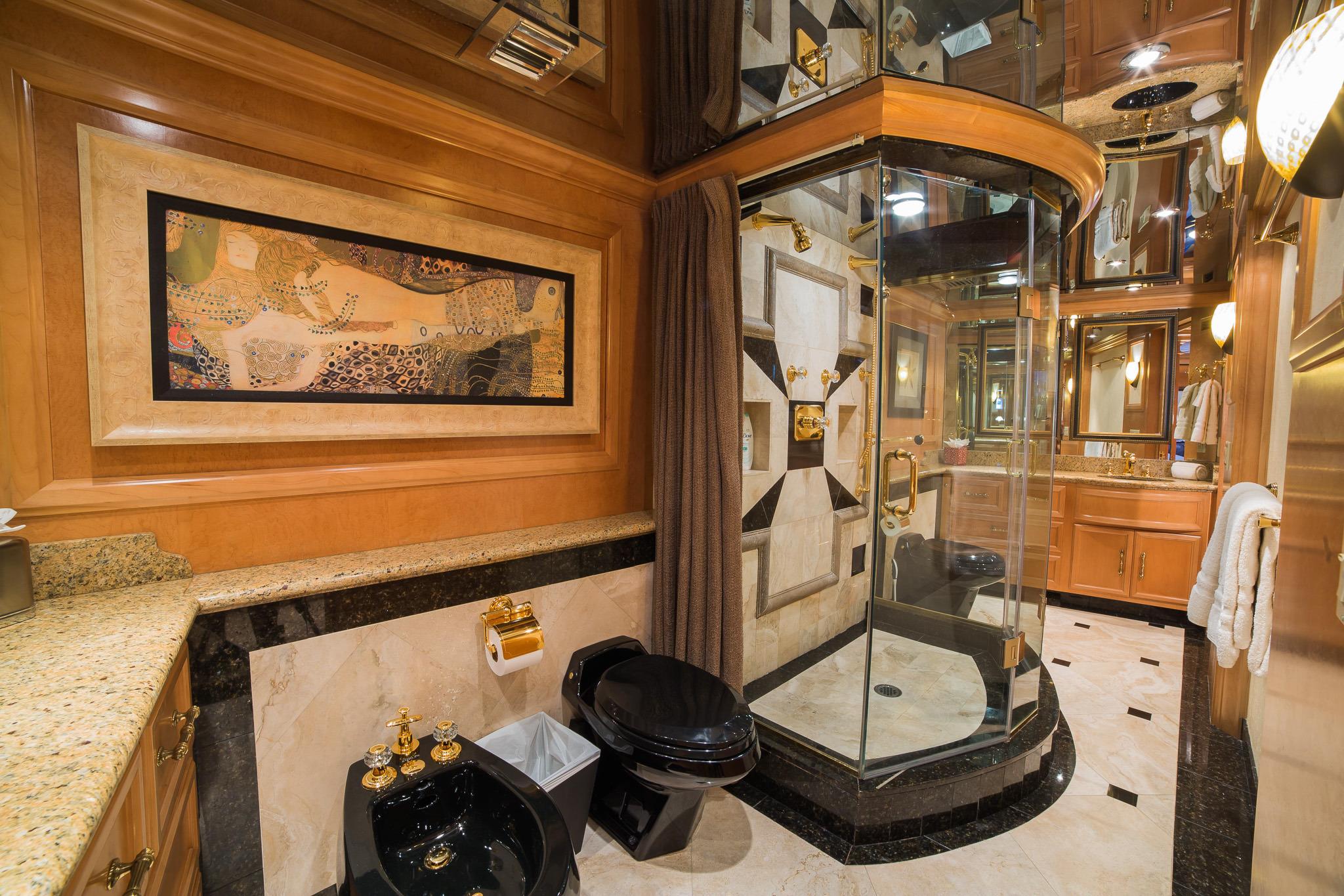 LADY LEX has plenty of exterior living areas to relax and enjoy, the aft deck is spacious and offers alfresco dining and wet bar, further aft the large swim platform makes water activities readily available.