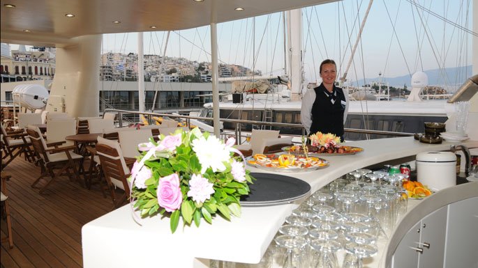 HARMONY V is a sleek and comfortable yacht. Her interior is spacious, with a rich rather than minimalist décor and enormous windows that let in lots of light and allow for magnificent views.