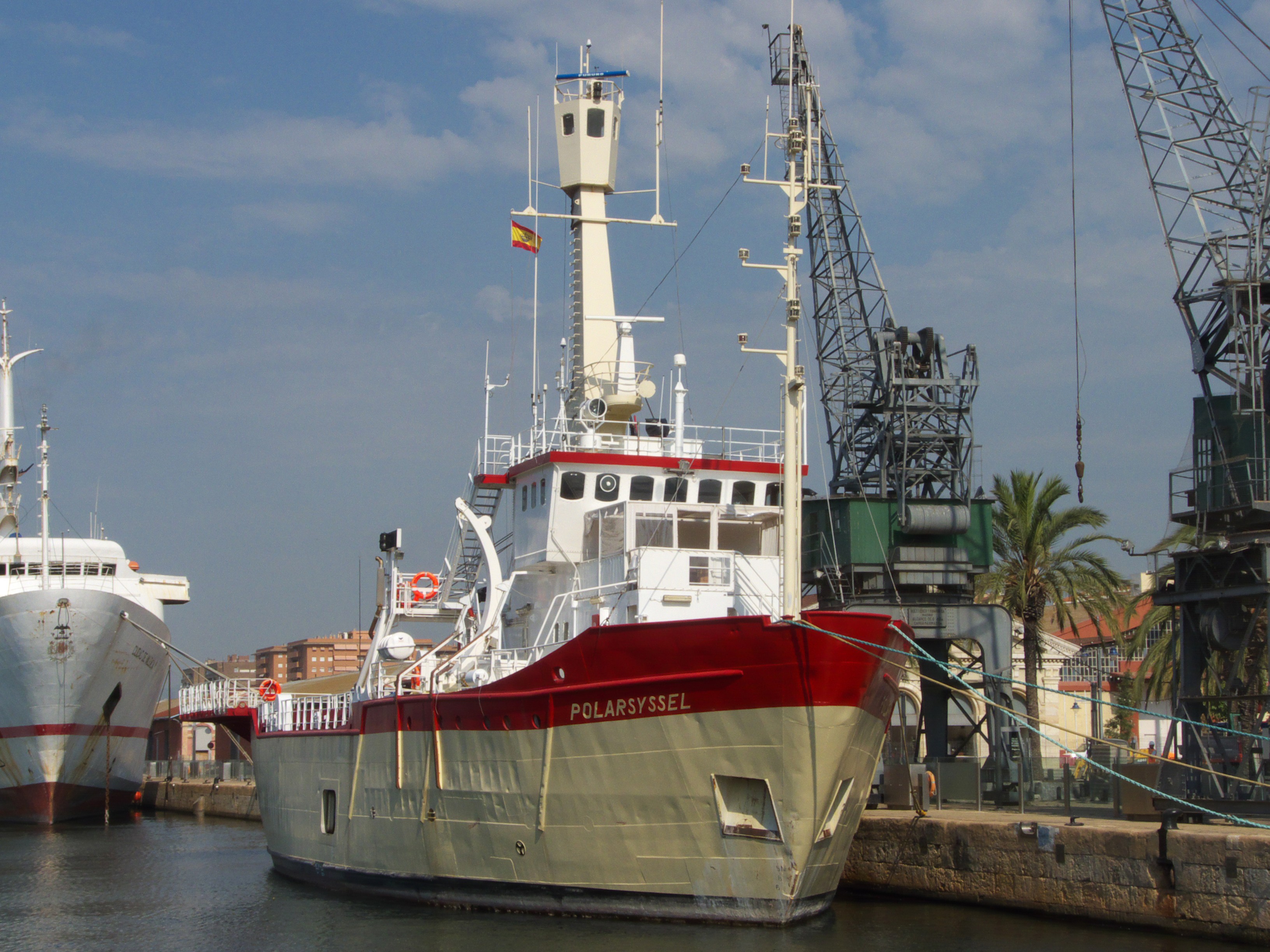 Polarsyssel was converted from a fishing trawler into an expedition yacht and support vessel by the German Peterswerft.