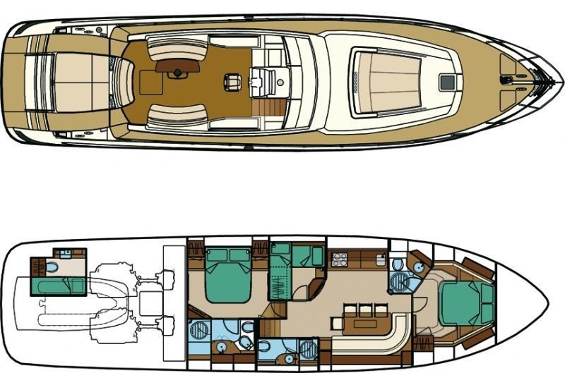 This performance yacht is available for luxury charters, offering accommodation for up to 4 guests, in 2 spacious double cabins.