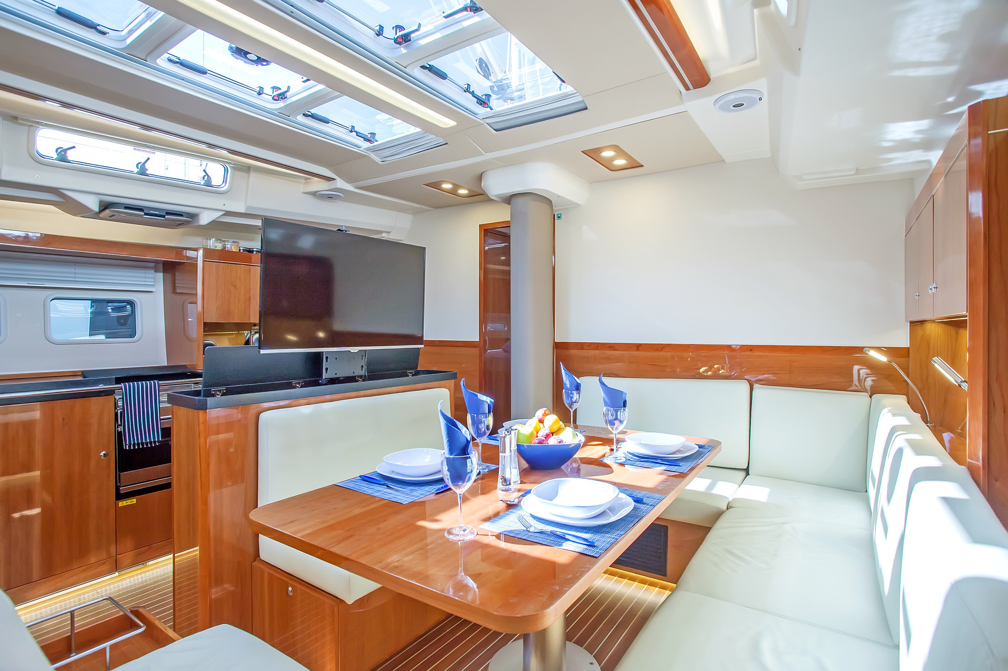 The yacht offers accommodation for 6 charter guests, in 3 cabins.