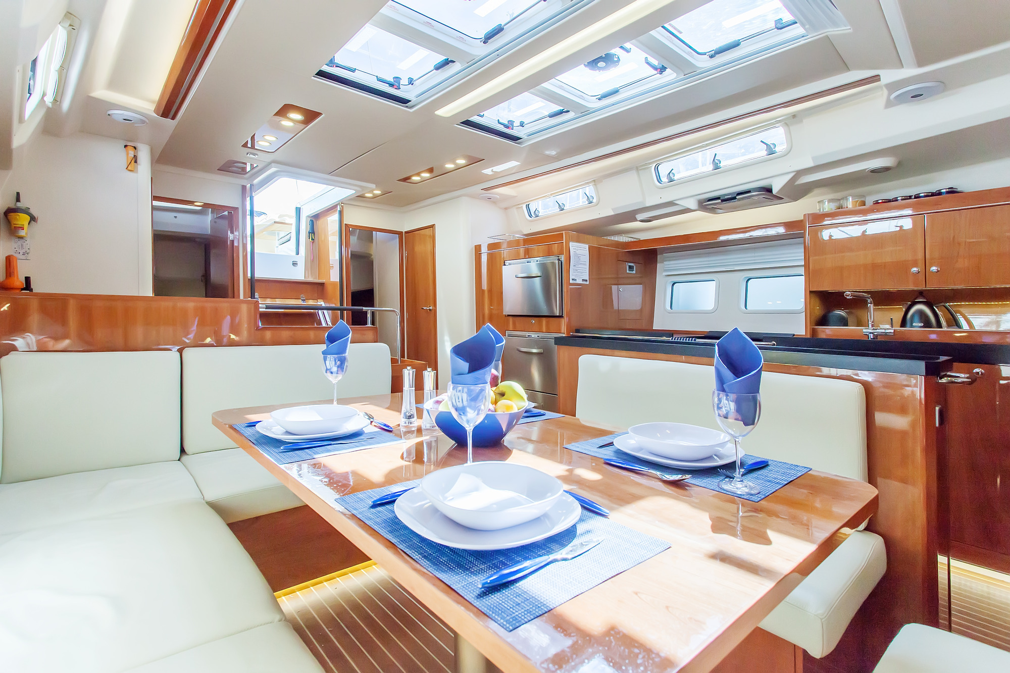 The yacht offers accommodation for 6 charter guests, in 3 cabins.