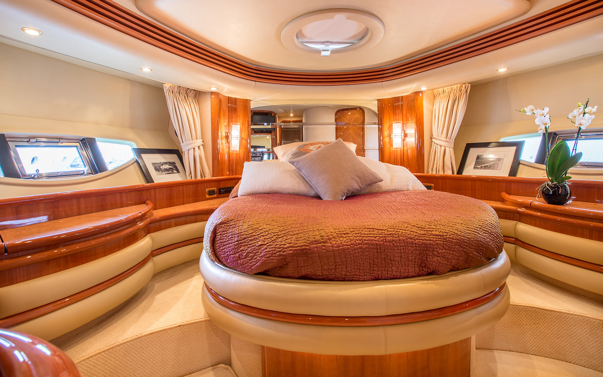 With her 5.42m beam she can easily accommodate up to eight guests in four luxurious cabins. A master cabin can be found amidships with a full width VIP cabin located forward as well as two twin cabins.