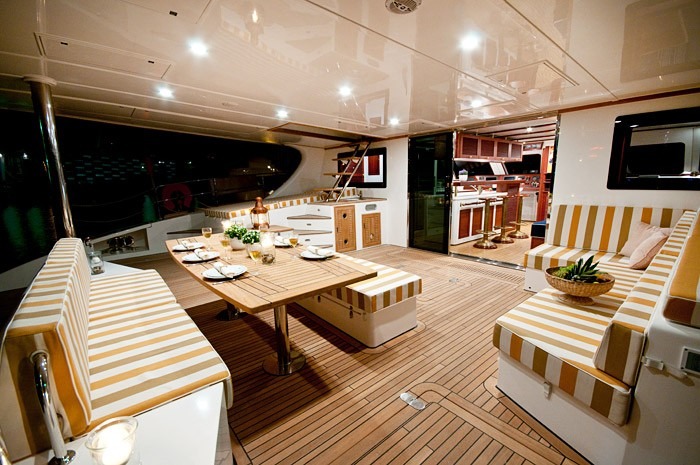NOTABLE FEATURES for OMBRE BLU 3: Spacious catamaran design ~ Two exterior decks ~ Alfresco dining ~ Exquisite cuisine ~ Contemporary interior decor ~ Onboard diving ~ Array of water toys ~ Excellent experienced crew