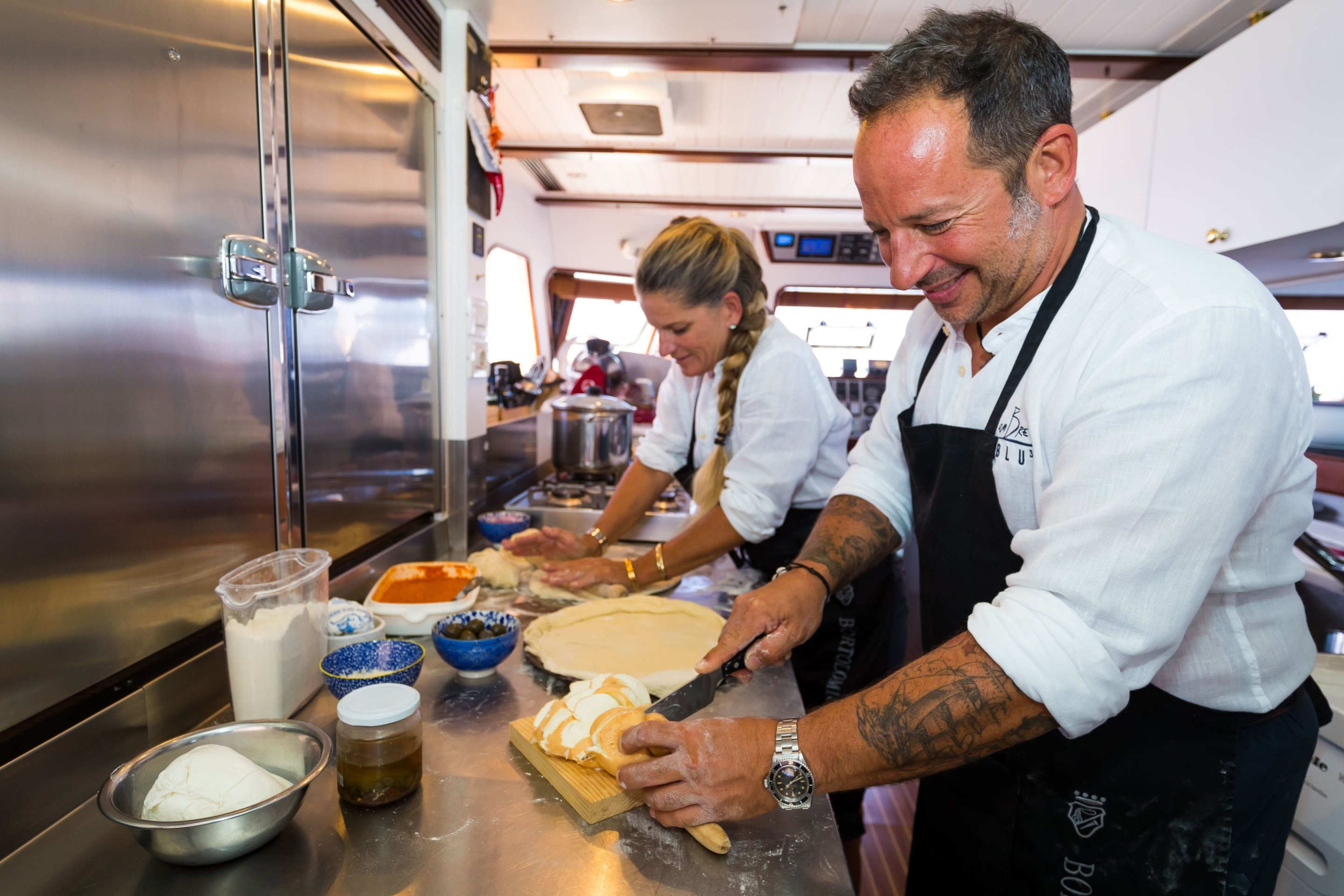 Accommodation comprises a master suite, 2 queen cabins and a bunk cabin, for 6 charter guests, with an optional bunk cabin for 2 children upon request. ~ Castoldi 150 Turbo diesel Jet tender of 5 meters long