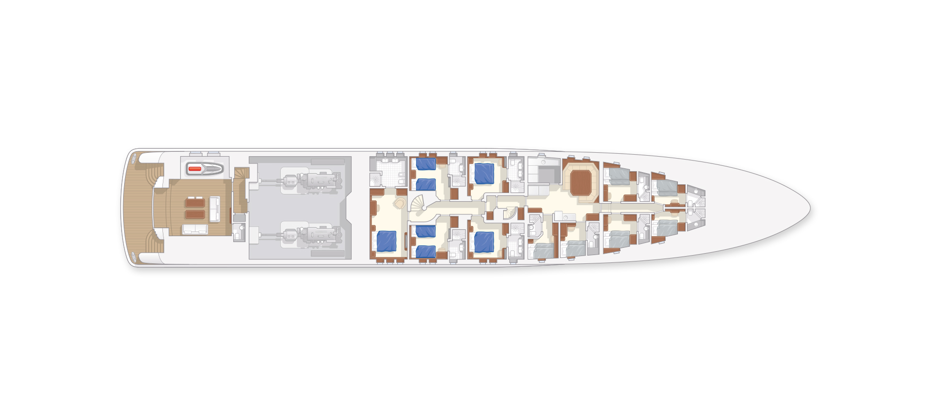 55m Heesen Fast Displacement Yacht Lower Deck GA