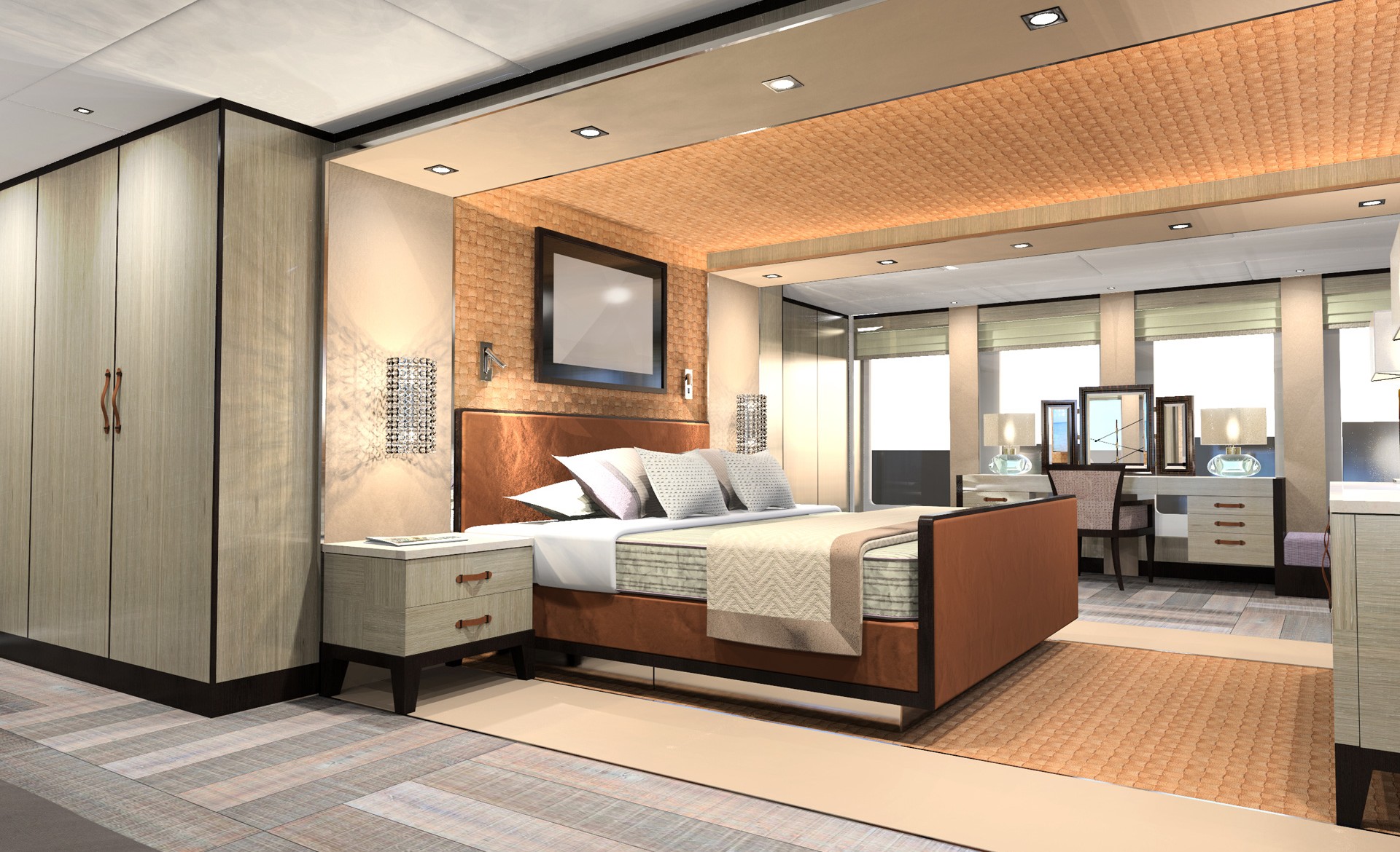 Accommodation spreads over six well-appointed and spacious staterooms with top amenities and ensuite bathroom facilities. The suites include the full-beam owner’s stateroom on the main deck, a large VIP stateroom, as well as four additional guest cabins located on the lower deck.
