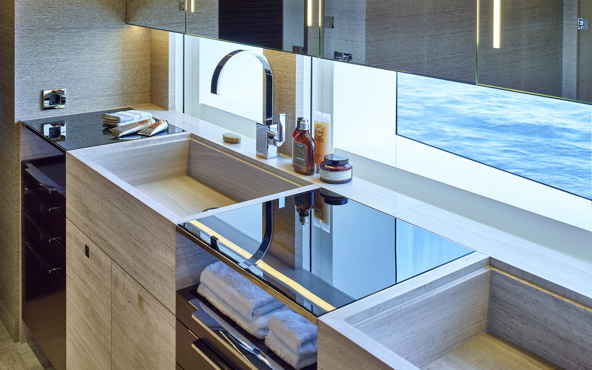 In addition to guests accommodation and crew quarters, the lower deck offers a large beach club area at stern, with a spacious platform to launch the tender, jet skis or enjoy the vast array of the water toys, with an easy access to the water.