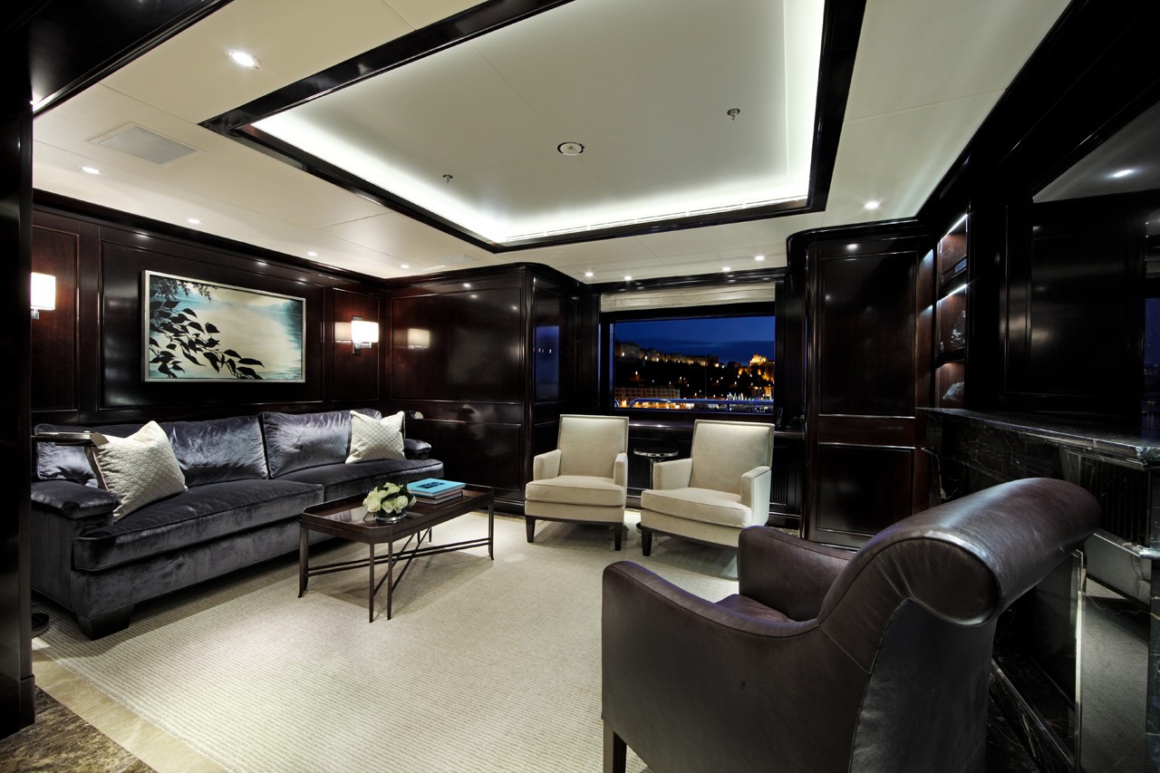 Overlooking the main aft deck is a cinema room. The cinema has a C-shaped central sofa for the ultimate in comfort when watching movies.