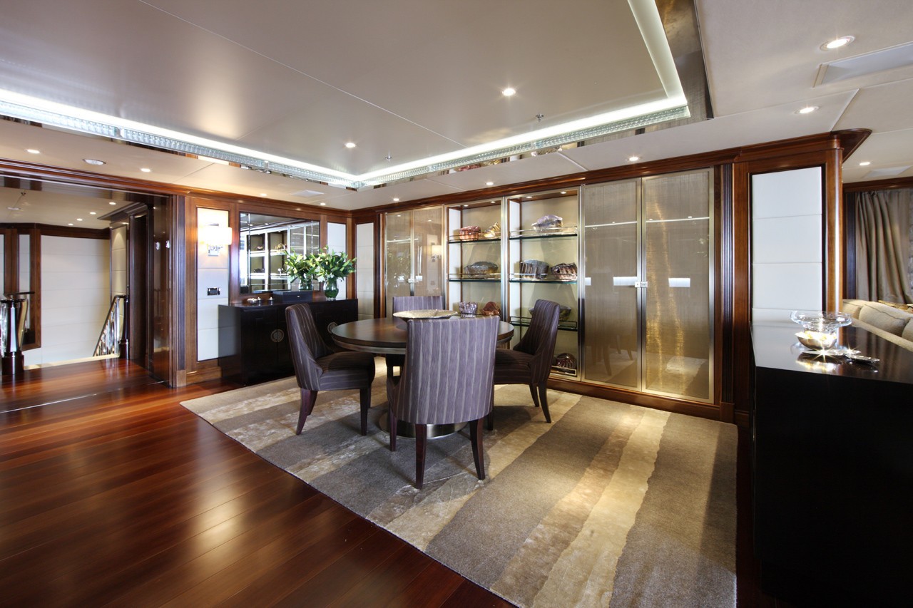 Overlooking the main aft deck is a cinema room. The cinema has a C-shaped central sofa for the ultimate in comfort when watching movies.