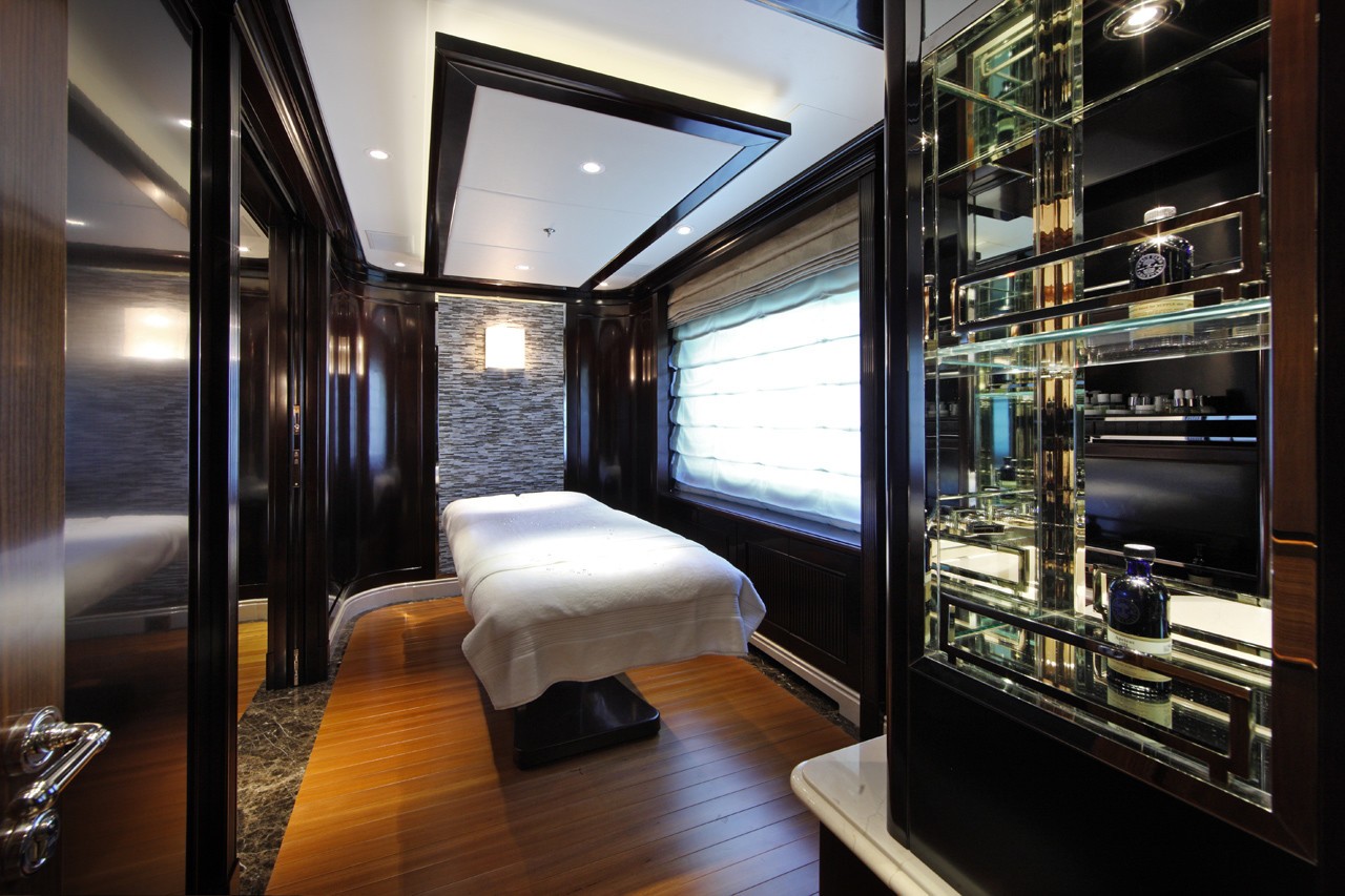 Adjacent to the bridge deck aft is a mini spa with two separate massage rooms. The Benetti 65m also has her very own beach club as well as a huge selection of water toys. Guest accommodation comprises of seven en suite cabins.