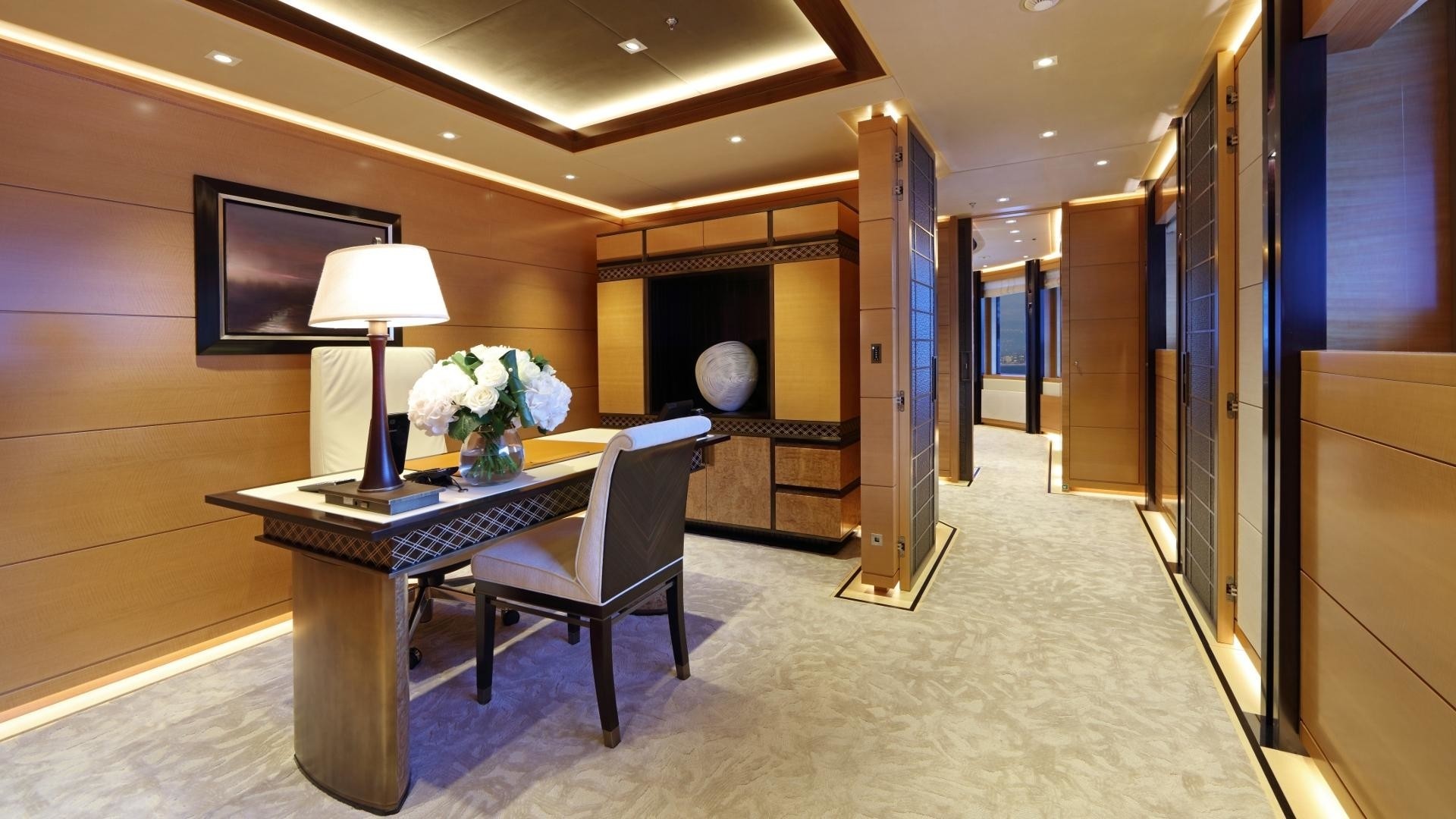 The master suite is located on the upper deck and features a private office and a terrace. There are two VIP staterooms, each with an ensuite. Two well-appointed twin and two double cabins are on the lower deck, all with ensuite ...