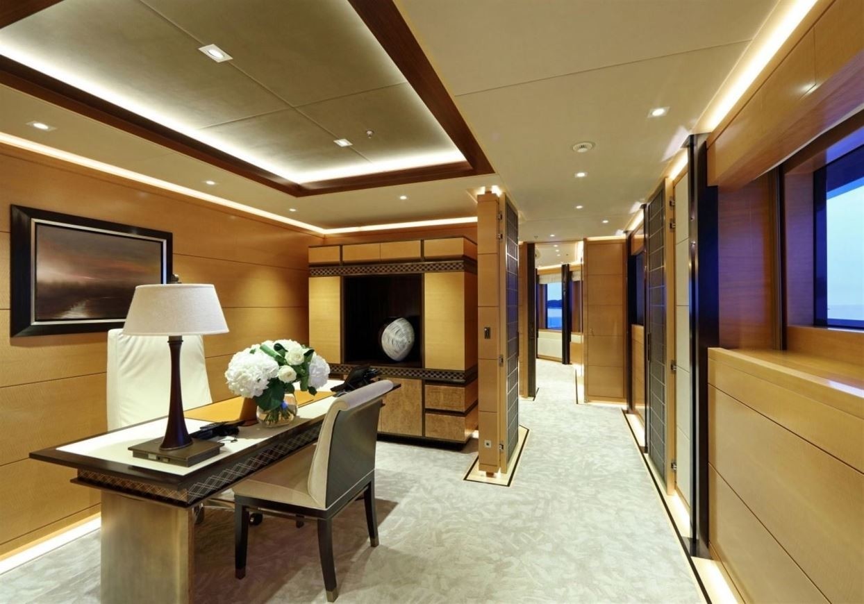 The master suite is located on the upper deck and features a private office and a terrace. There are two VIP staterooms, each with an ensuite. Two well-appointed twin and two double cabins are on the lower deck, all with ensuite ...
