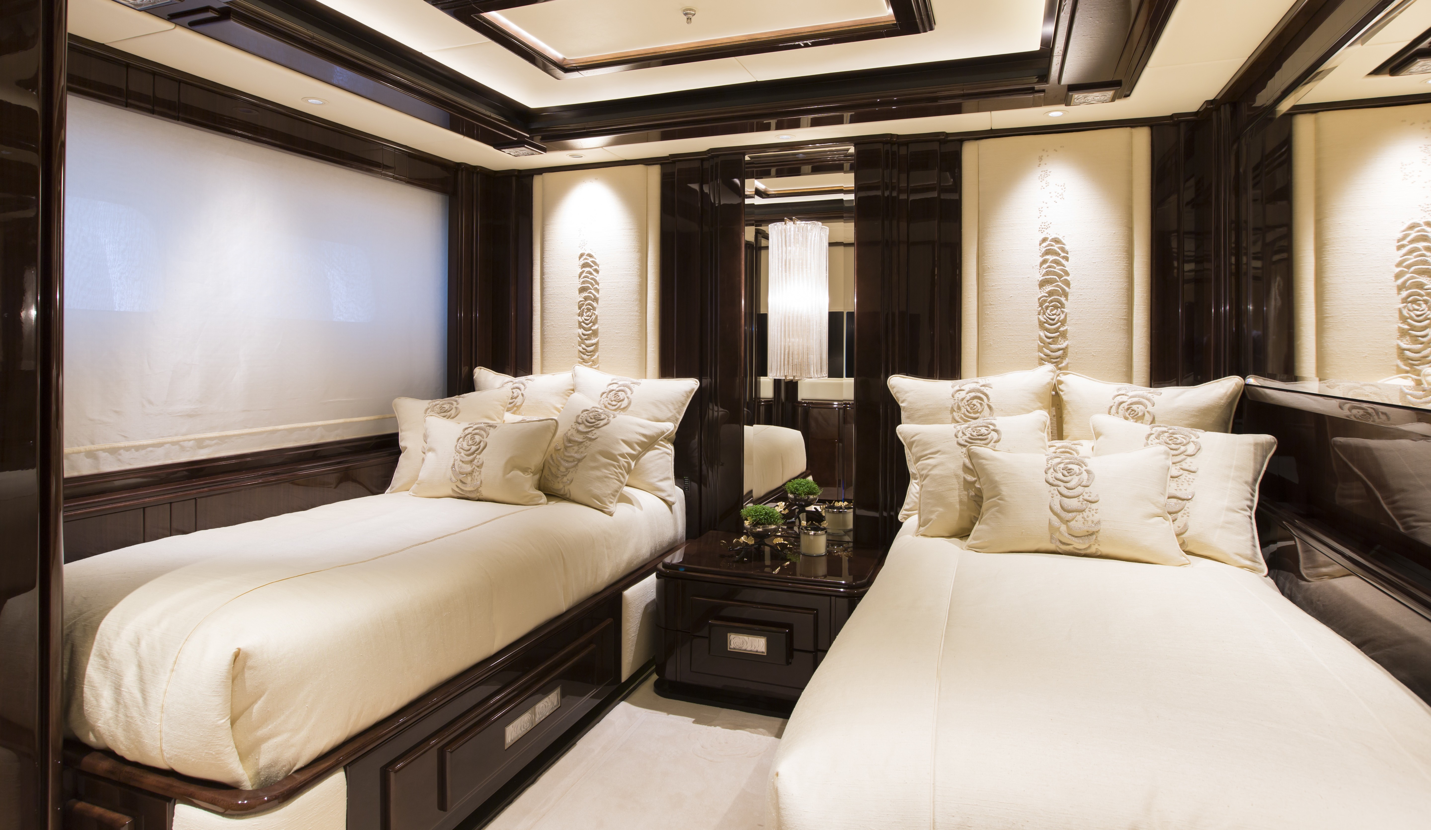 These include a master suite, one VIP stateroom, one double cabin, three twin cabins and one Pullman bed. She is also capable of carrying up to 12 crew members on board for the ultimate luxury yacht experience.